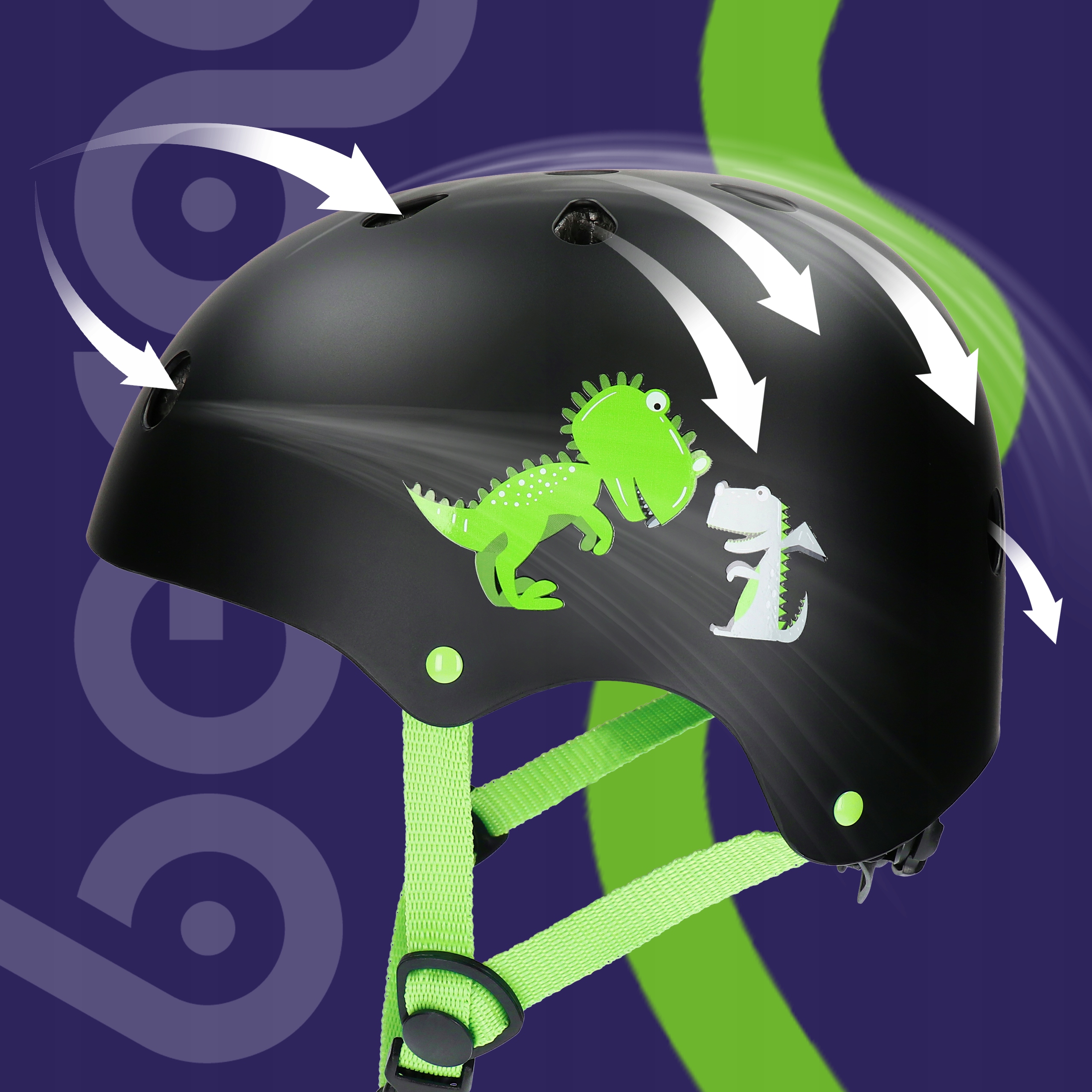 Детский шлем с мотивом динозавра идеально подойдет маленькому исследователю — светло-черный велосипедный шлем салатового цвета будет стимулировать воображение и придавать смелости каждому маленькому искателю приключений, обеспечивая его безопасность во время игры.