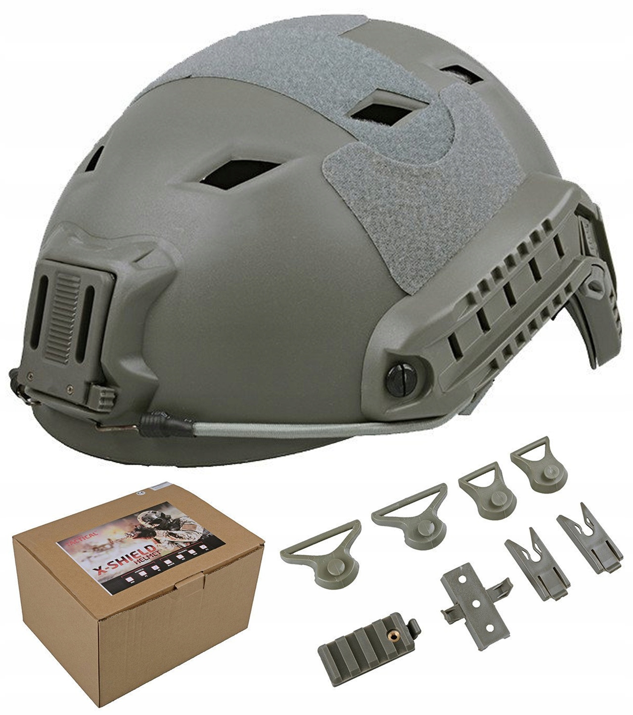 ВНИМАНИЕ! Предметом предложения является копия шлема GF Corp X-Shield FAST BJ в цвете Foliage Green. Остальные элементы используются для представления функциональности.