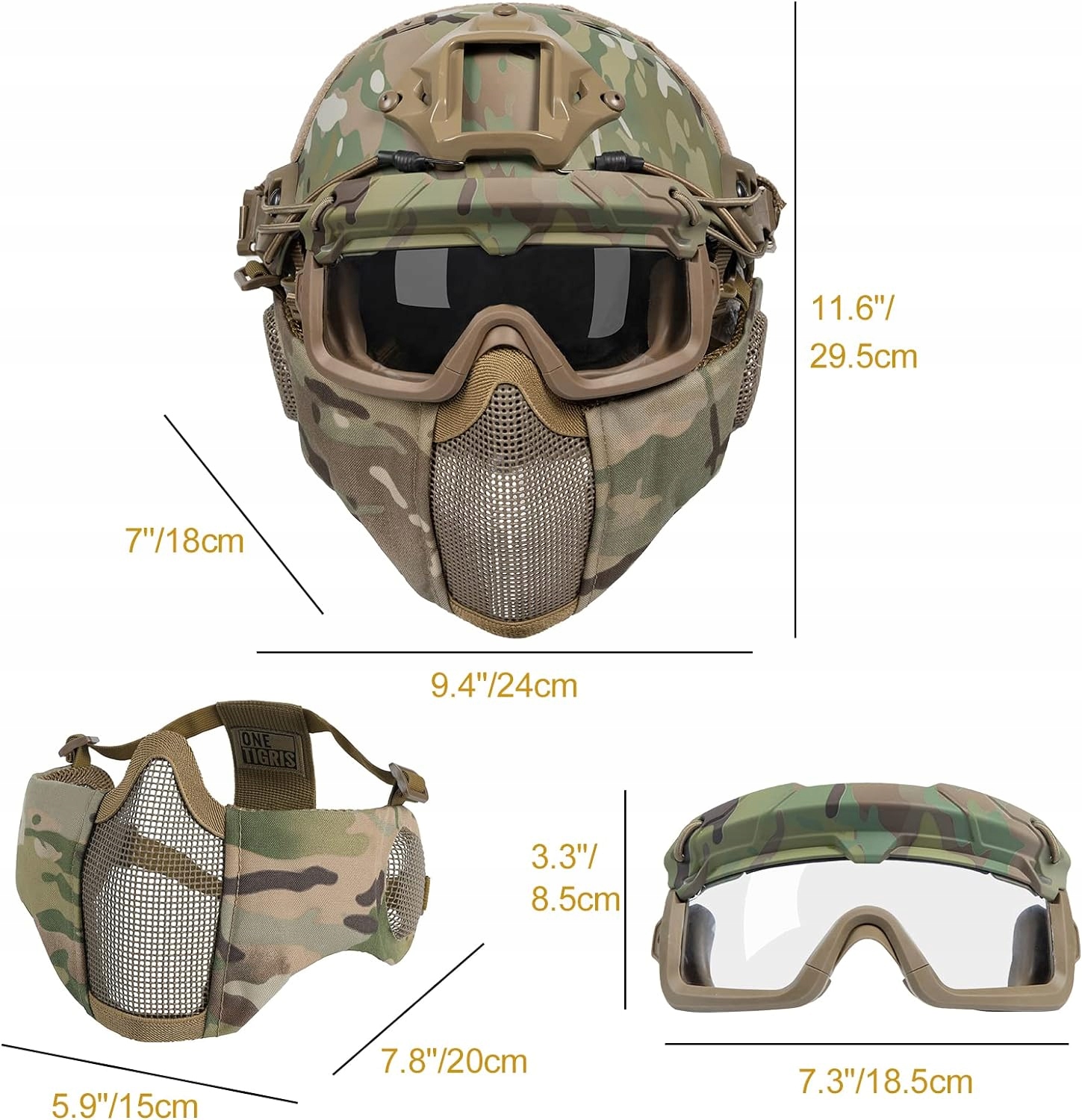 Полная защита: Шлем для страйкбола, маска для лица и защитные очки — отличное и идеальное сочетание. Конструкция 3-в-1 обеспечивает комплексную защиту головы. Шлем, маску и защитные очки можно использовать отдельно. Вы можете комбинировать свое снаряжение в соответствии с вашими игровыми потребностями.