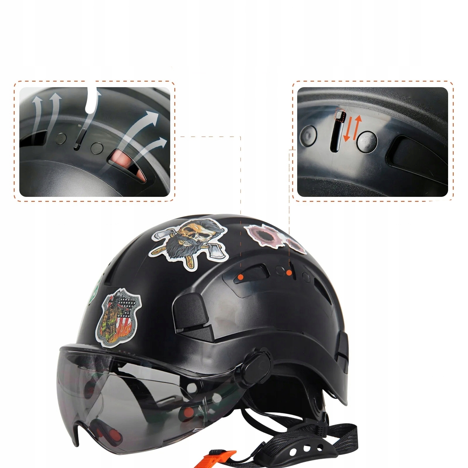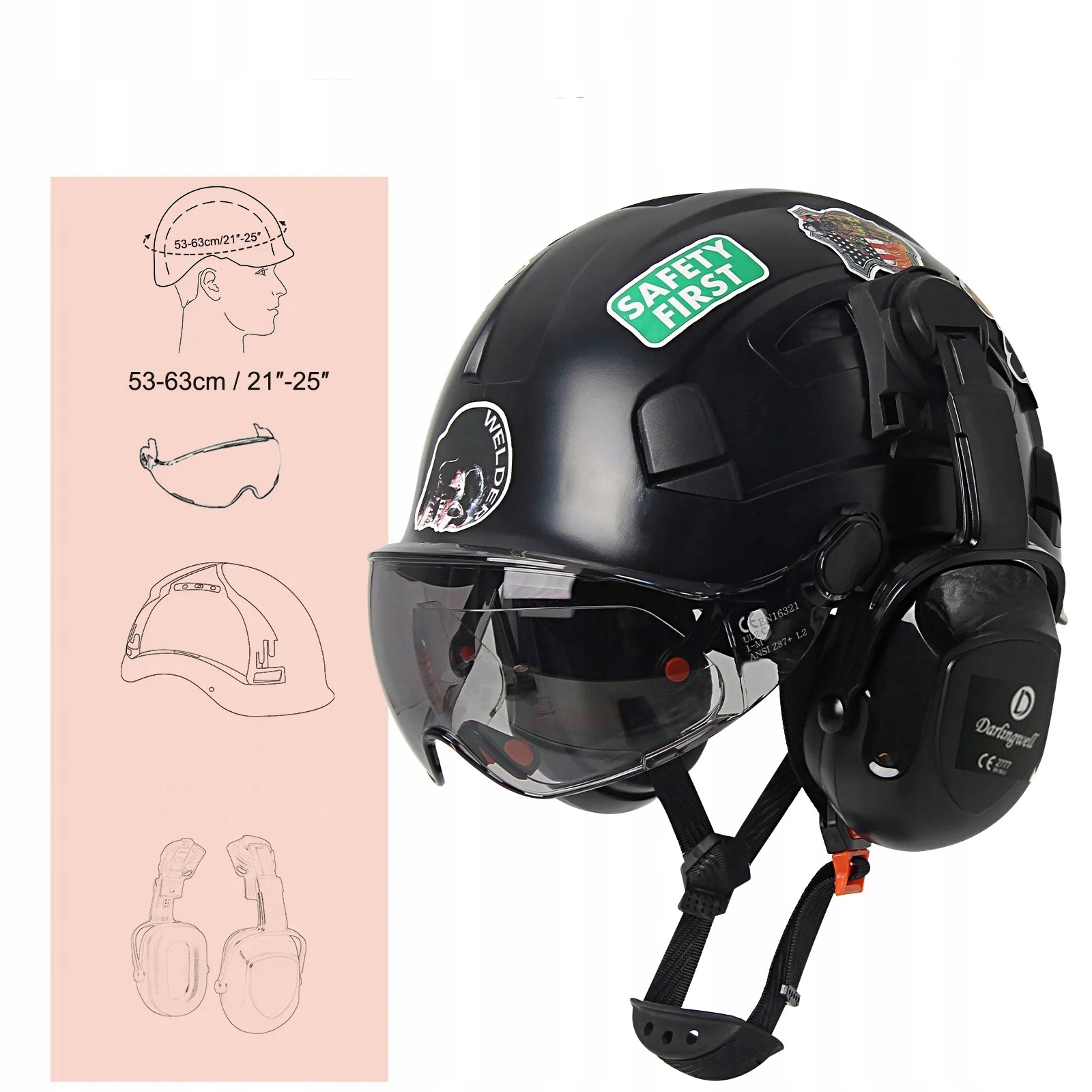 ⭐ ЗАЩИТНЫЙ ШЛЕМ CE С КОЗЫРЬКОМ, ЗАЩИТНЫЕ ОЧКИ, НАУШНИКИ ДЛЯ ANSI ENGINEERING ЗАЩИТНЫЙ ШЛЕМ С 50 ВОДОНЕПРОНИЦАЕМЫМИ НАКЛЕЙКАМИ ДЛЯ САМОДЕЛЬНЫХ ИЗДЕЛИЙ ⭐ РЕГУЛИРУЕМЫЙ 52-64 см ⭐ ЧЕРНЫЙ ⭐