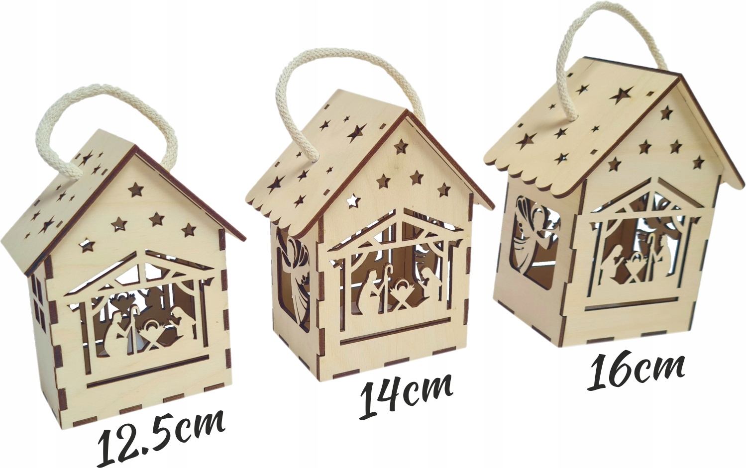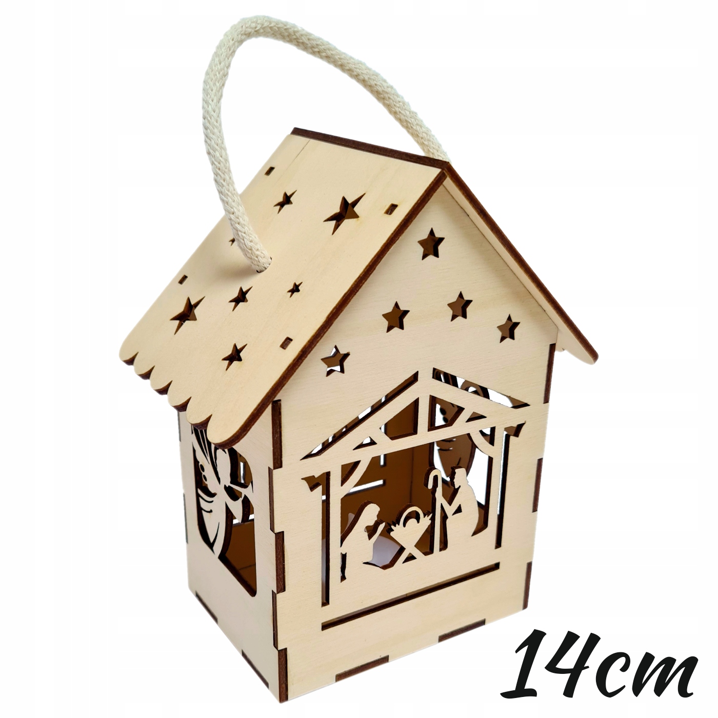 Деревянный Адвент-фонарь для светодиодных поворотов, вертеп 14см.