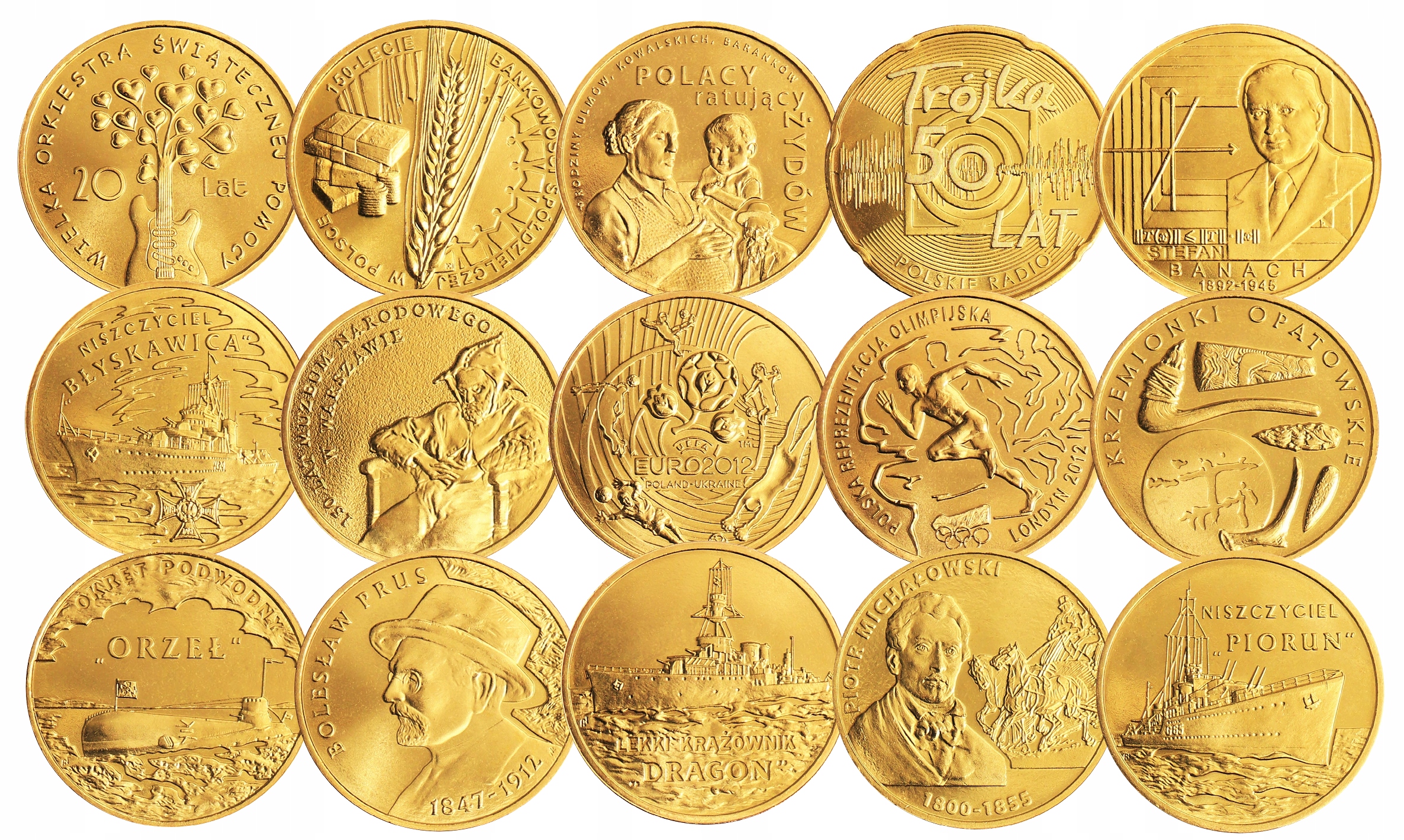 Набор из 15 монет номиналом 2 злотых GN, выпущенных в 2012 году.