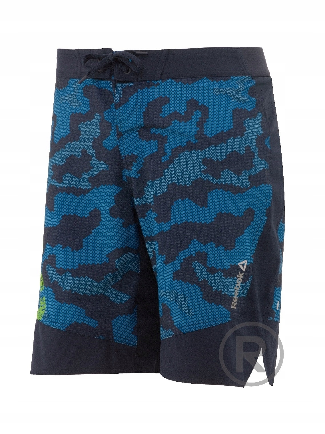 - Принт, имитирующий синий камуфляж, по всей длине шорт.