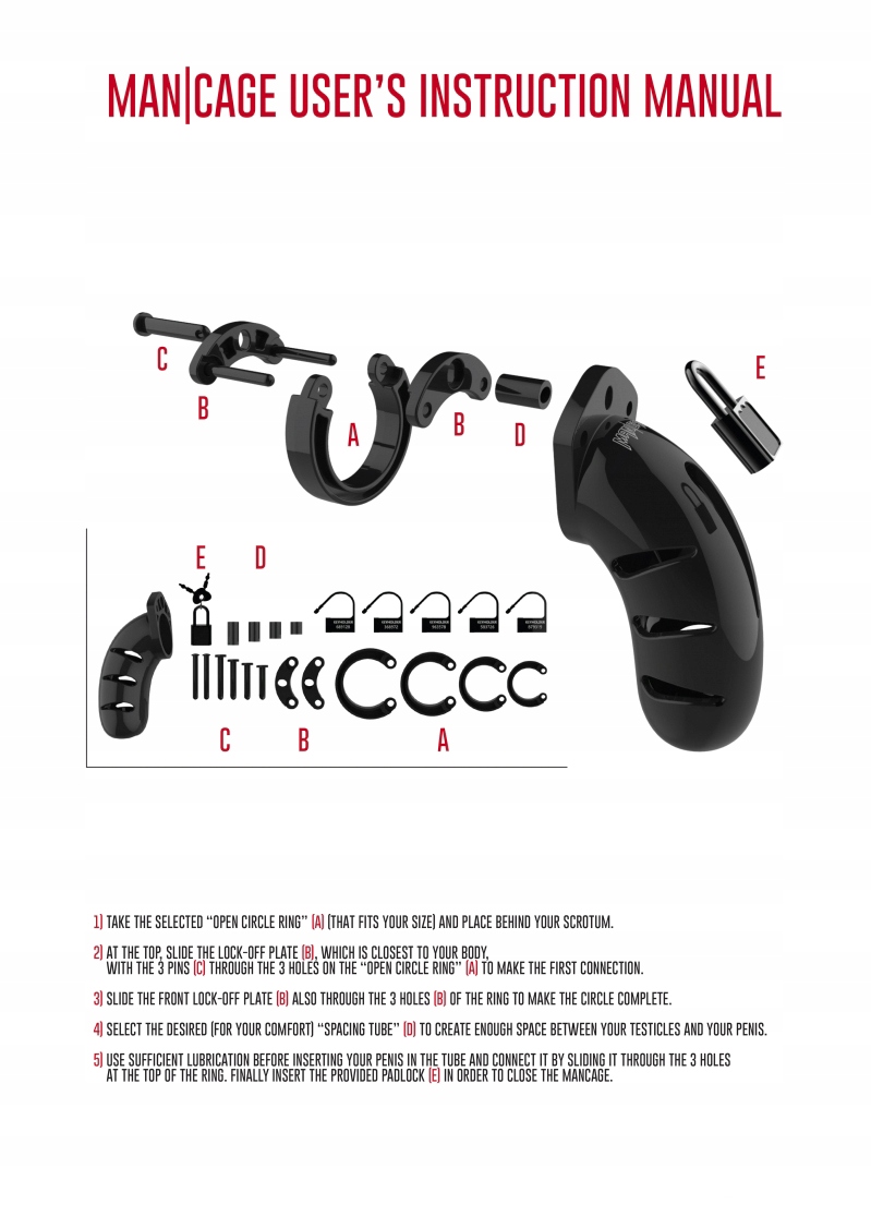 КОНТРОЛЬ ИЛИ БЫТЬ КОНТРОЛИРУЕМЫМ, ВОТ ВОТ ВОПРОС! Монтажные клетки Man|Cage изготовлены из высококачественного поликарбоната. Это чрезвычайно легкий, прочный и гипоаллергенный материал. Клетка состоит из трех идеально подобранных друг к другу элементов. Два зажима соединяют верхние элементы друг с другом, а более узкий овальный зажим соединяет кольца с клеткой. Широкий выбор колец разных размеров, расположенных на разном расстоянии друг от друга, позволит вам идеально подобрать экипировку! Кольца гарантируют комфорт и безопасность.