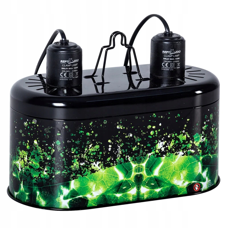 Repti-Zoo DRL01 — двойной держатель для лампочек с резьбой Е27, общая мощность которого составляет 300Вт. Это идеальное решение для неинвазивной установки обогревающих и UVB-ламп в каждом террариуме, обеспечивая при этом оптимальное освещение и обогрев аквариума. Патрон имеет две независимые электрические цепи, что увеличивает его функциональность. Современный тропический вид идеально сочетается с декором террариума.