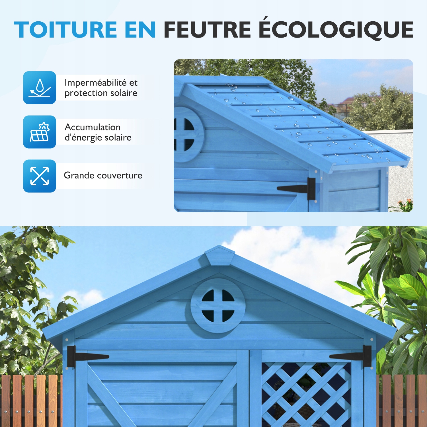 Устойчивый к погодным условиям. дизайн: Этот сарай для садового инструмента имеет устойчивую к атмосферным воздействиям крышу, эффективно защищающую внутреннее пространство от дождя, ветра и солнечного света. Наклонная конструкция предотвращает скопление воды. Кроме того, фальшпол помогает защитить предметы от влаги и пыли.
