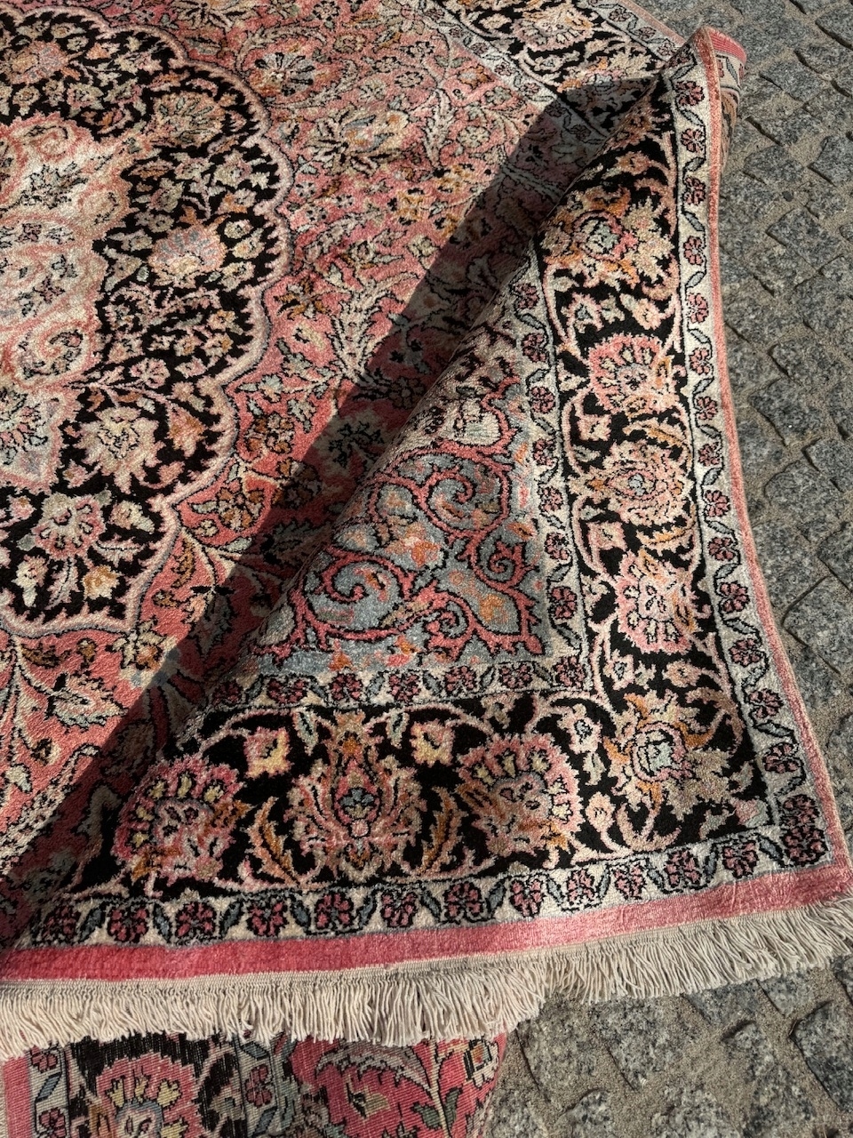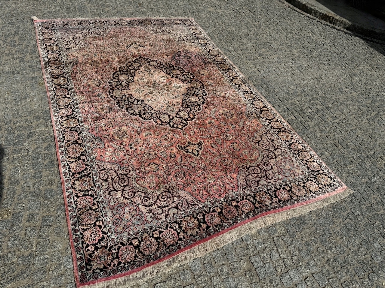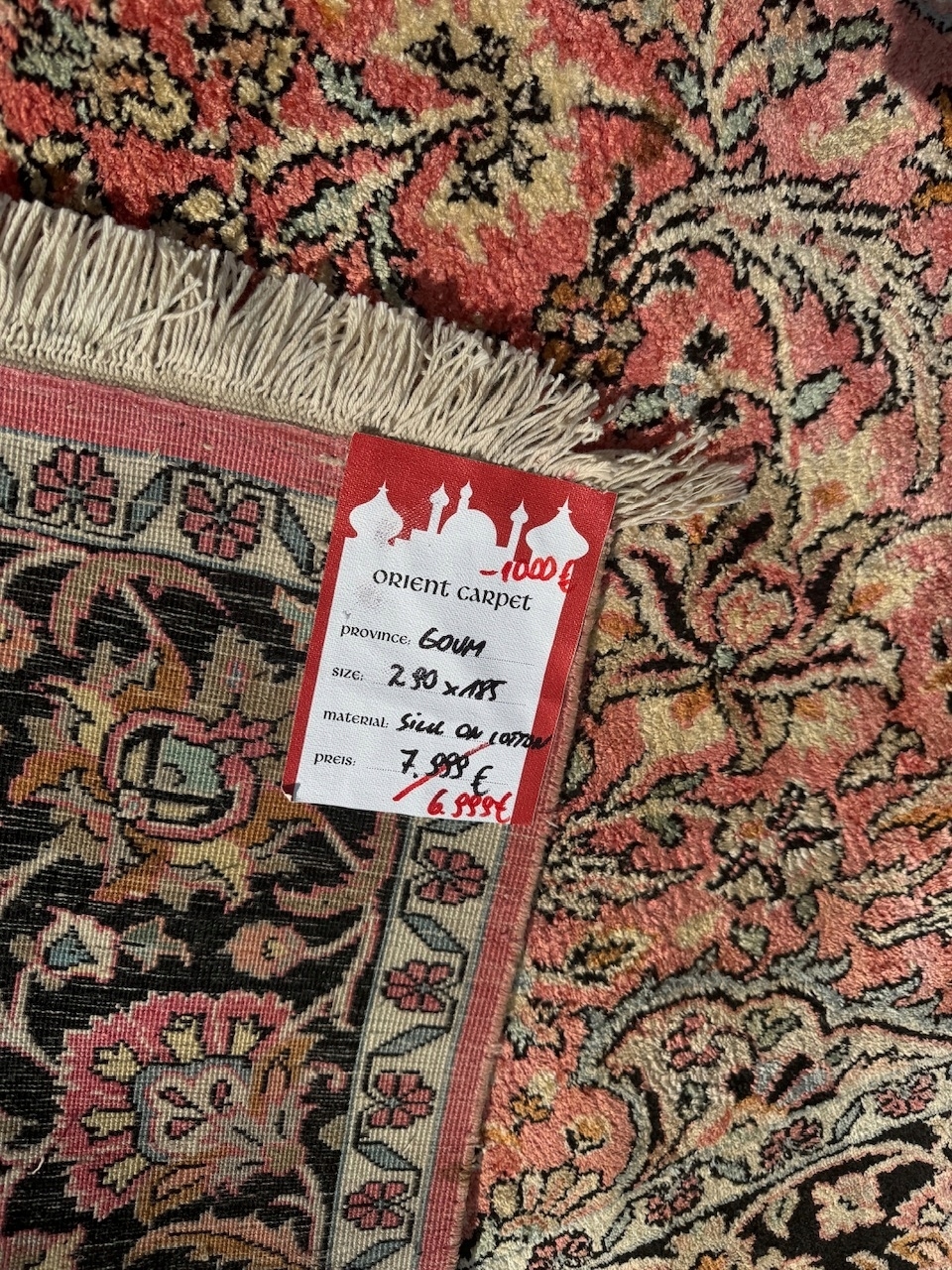 Субъект: рука -Woven Persian Ghou Carpet. Имеет сертификат подлинности. В галерее, до скидки, это стоило почти 8 000 евро или около 31 000 человек. Расовые персидские узоры делают этот коврик для многих интерьеров. Название происходит от города, в котором он производится, и относится к ковру высшего класса от группы.