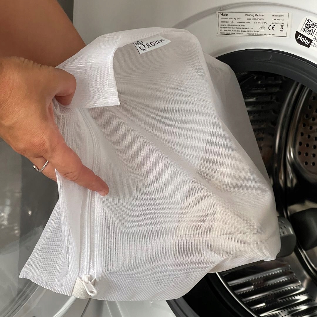 - При стирке в стиральной машине используйте мешки для стирки.