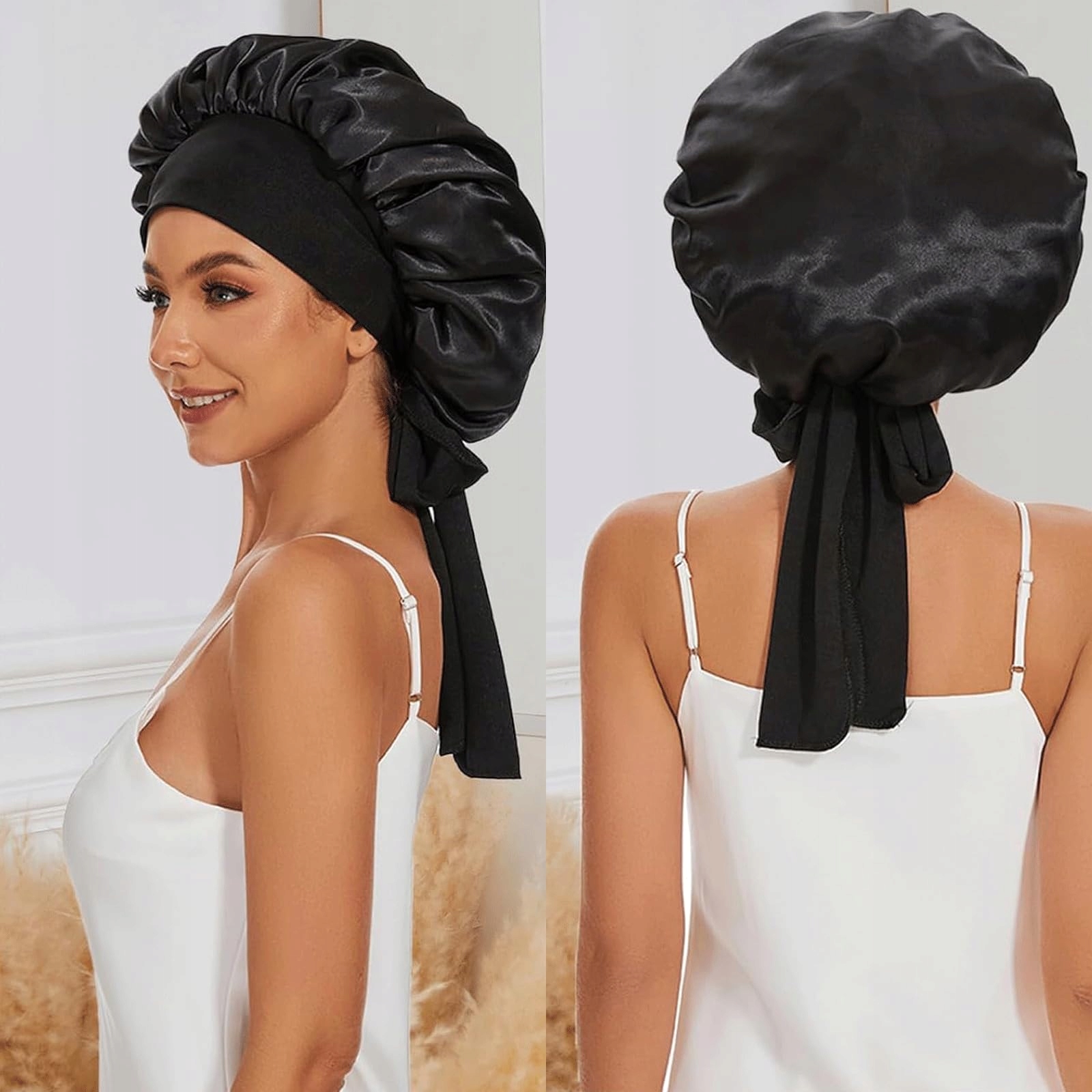 Независимо от того, вьющиеся у вас волосы, естественные, волнистые, прямые или ровные. длинные косы и коробчатые косы, эта атласная шапка - ваш выбор