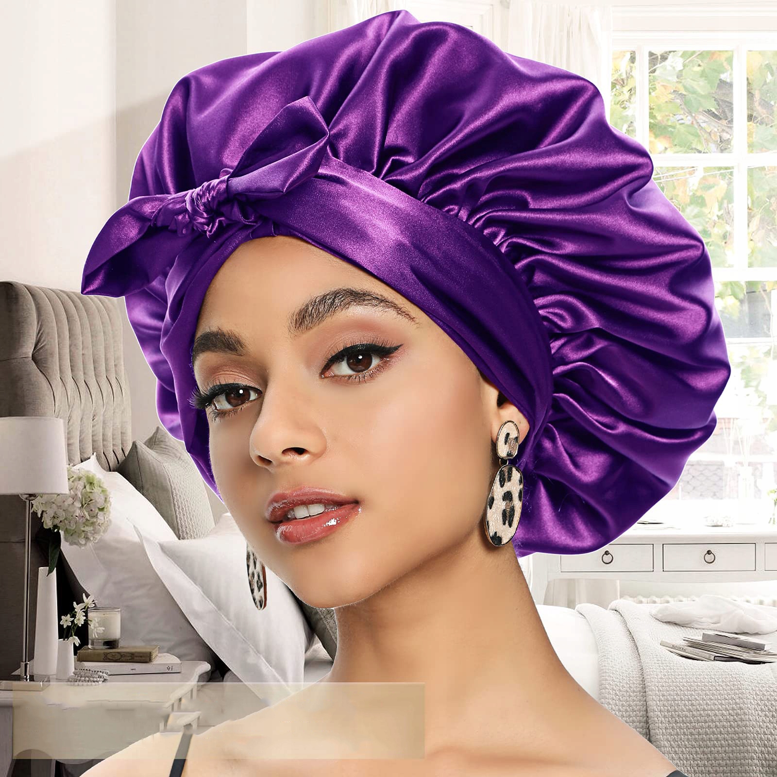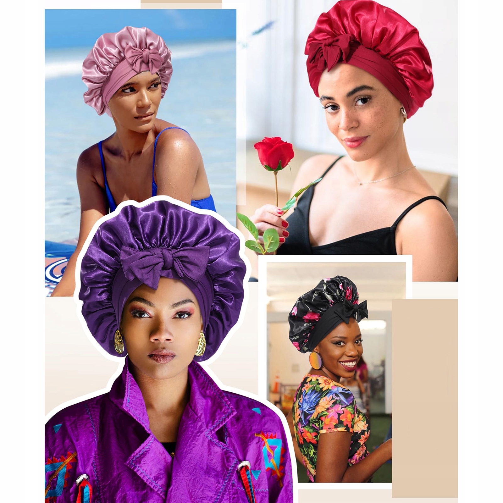 Шелковая кепка с атласной кепкой для спящих волос с группой
