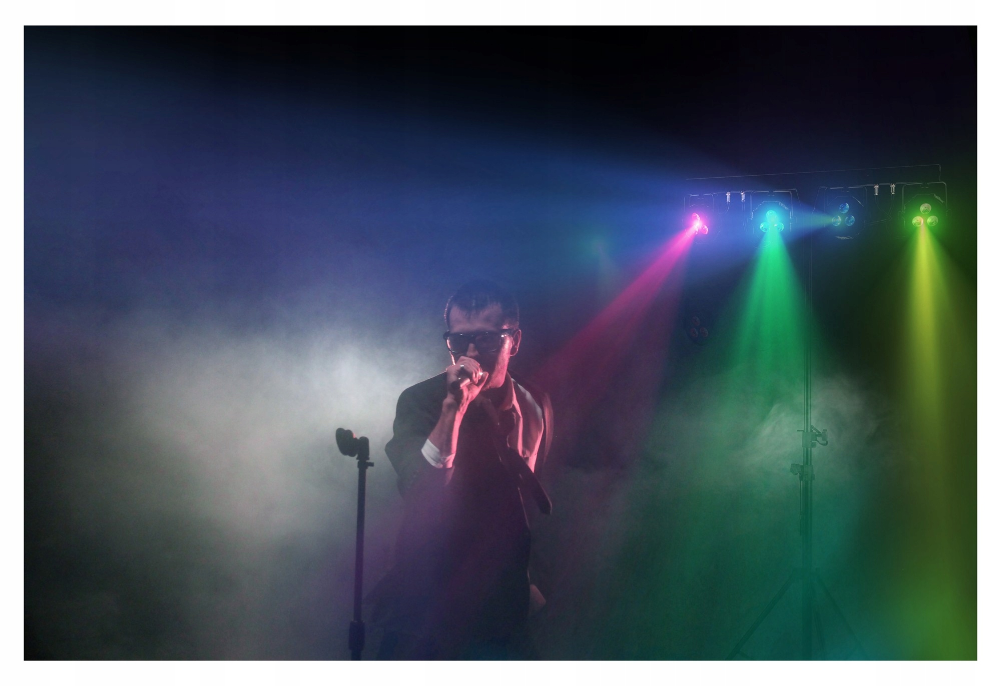 Мобильная система освещения. Трехсветодиодный светодиод PAR-Spot мощностью 9 Вт. Управление через DMX 512, беспроводная педаль или вручную, ножная педаль с беспроводной передачей радиосигнала. Автоматический и музыкальный режимы, в комплекте с осветительной стойкой длиной 3,10 м, включая транспортировочную упаковку и педаль управления.