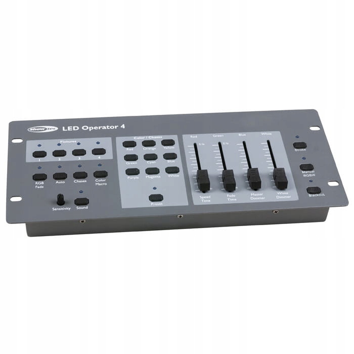 LED Оператор 4 — это компактный DMX-контроллер для светодиодных светильников с 3- или 4-канальными режимами (RGB, RGBW или RGBA). Это простой в использовании контроллер со встроенной звуковой активацией или возможностью ручного воспроизведения. LED Оператор 4 может управлять светильниками в четырех различных группах независимо друг от друга. Его кнопки с заранее смешанными цветами, запускаемые одним касанием, встроенные элементы управления стробоскопом и диммером, делают его идеальным для любого оператора, который ищет простой способ управления любым светодиодным светильником.
