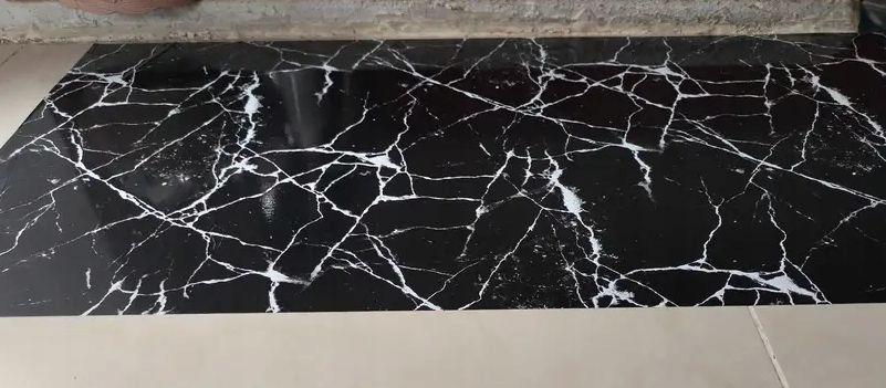 Реалистичный Черный мраморный воспроизведение дает интерьер исключительной элегантности и роскошному характеру.
