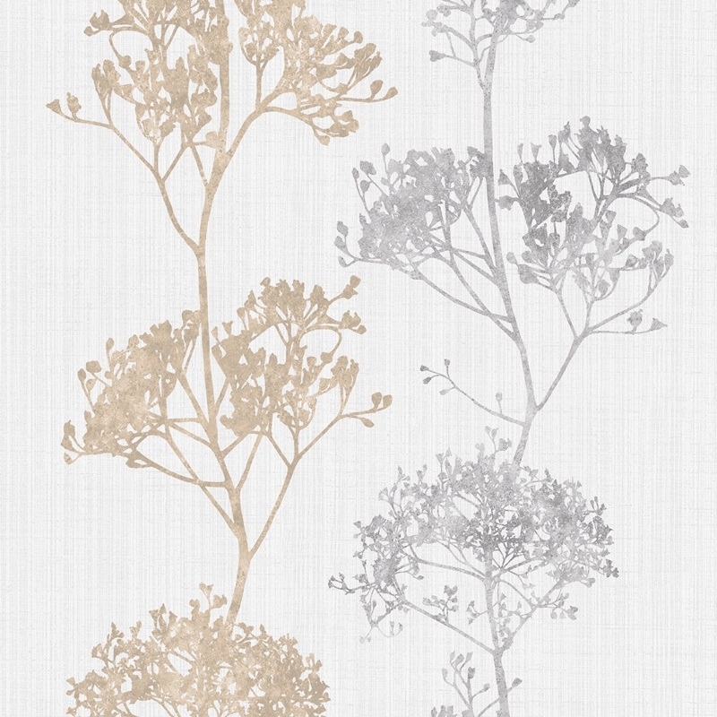 ОБОИ, УЗОР РАСТЕНИЙ ДЕРЕВЬЕВ, ВИНИЛ НА НЕПОЛЕВОМ ПОЛЕ