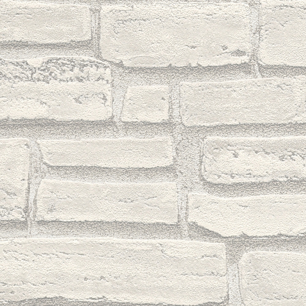 Флизелиновые обои немецкой компании A.S. Творение из коллекции Dekora Natur. Рисунок представляет собой идеальную имитацию кирпичной стены в теплом серо-бежевом цвете.