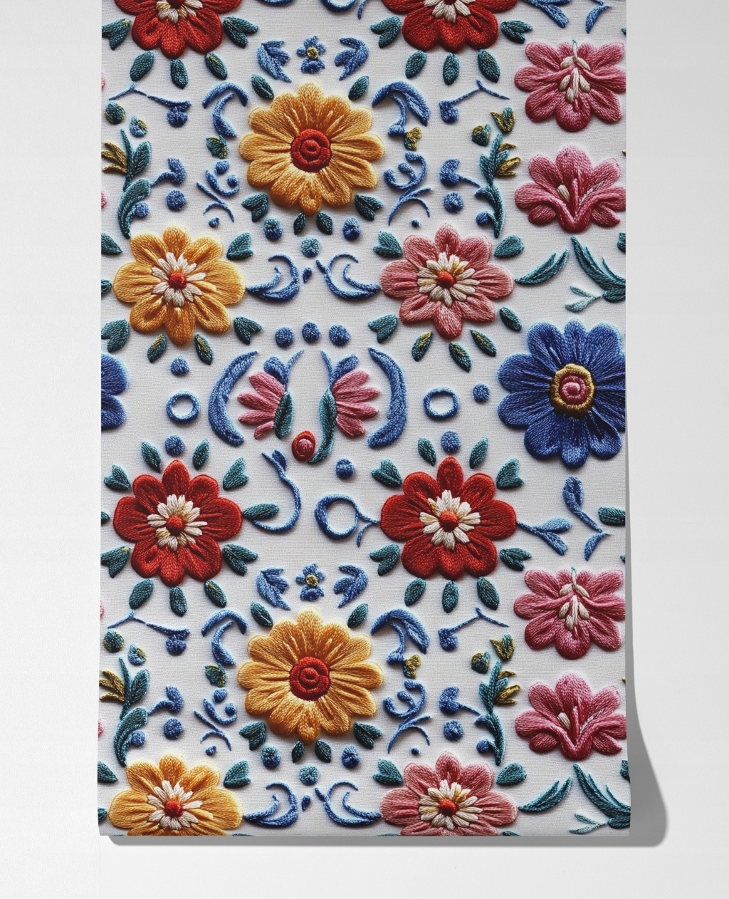 Обои для непреодолимого рулона в рулоне 0,5x10m вышивающие цветы, народные