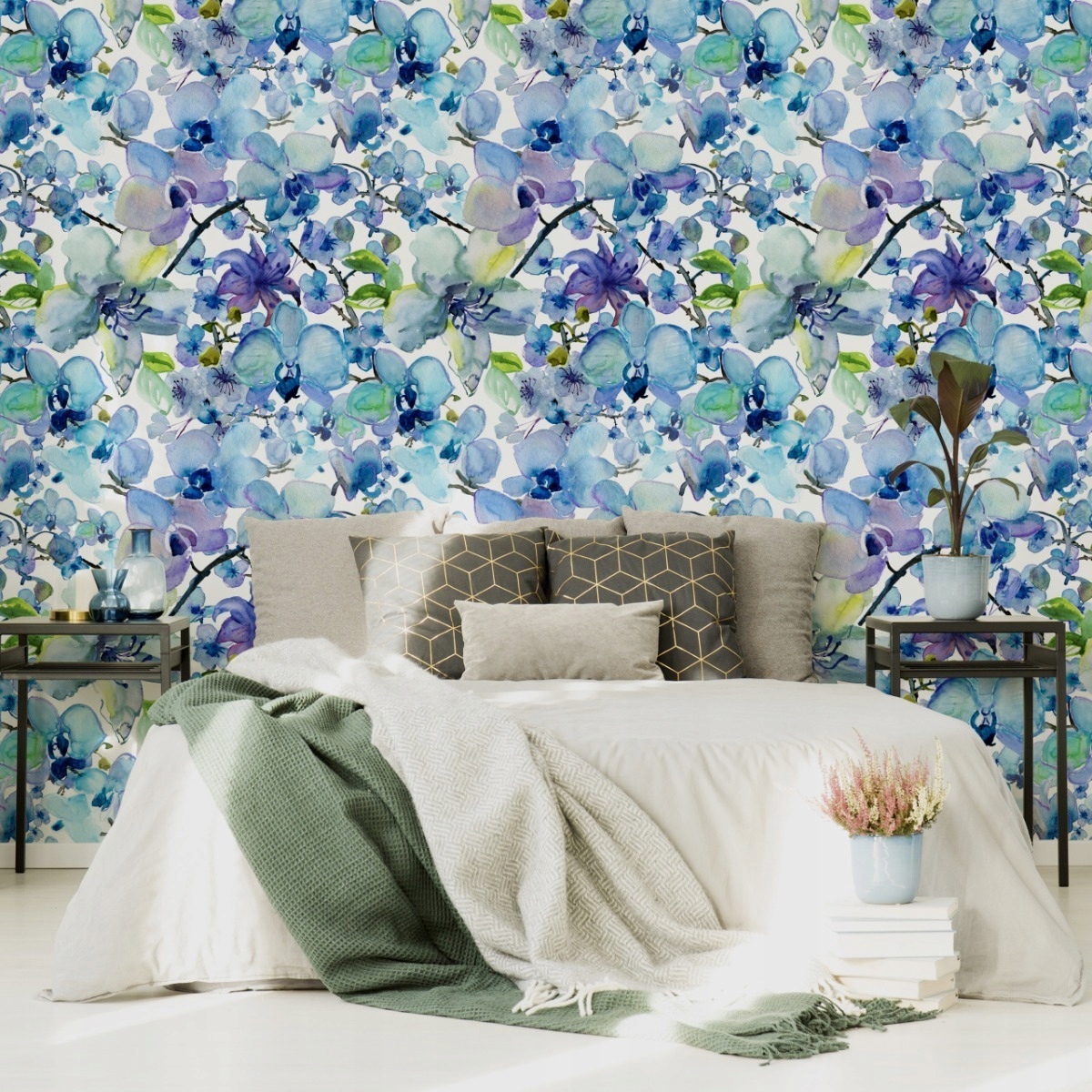 Обои для спальни салон окрашенные цветы Orchidaa Leaves Nature