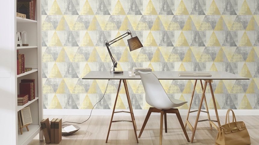 Обои-геометрия-большие треугольники серый желтый