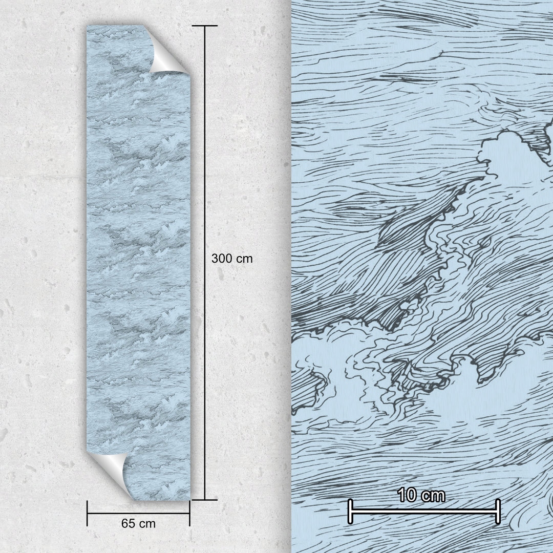 ОБОИ ГРАФИЧЕСКИЕ ОБЛАКА ГРАВИРОВКА ВИНТАЖНЫЕ ЛИНИИ ЛИНИИ СИНИЕ