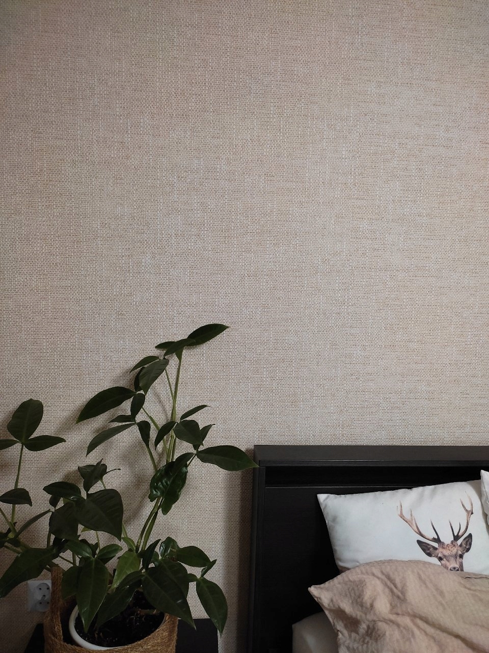 Узор - идеальная имитация ткани, канва в бежевых тонах, на ощупь четко ощущаются интересные переплетения и тиснение,