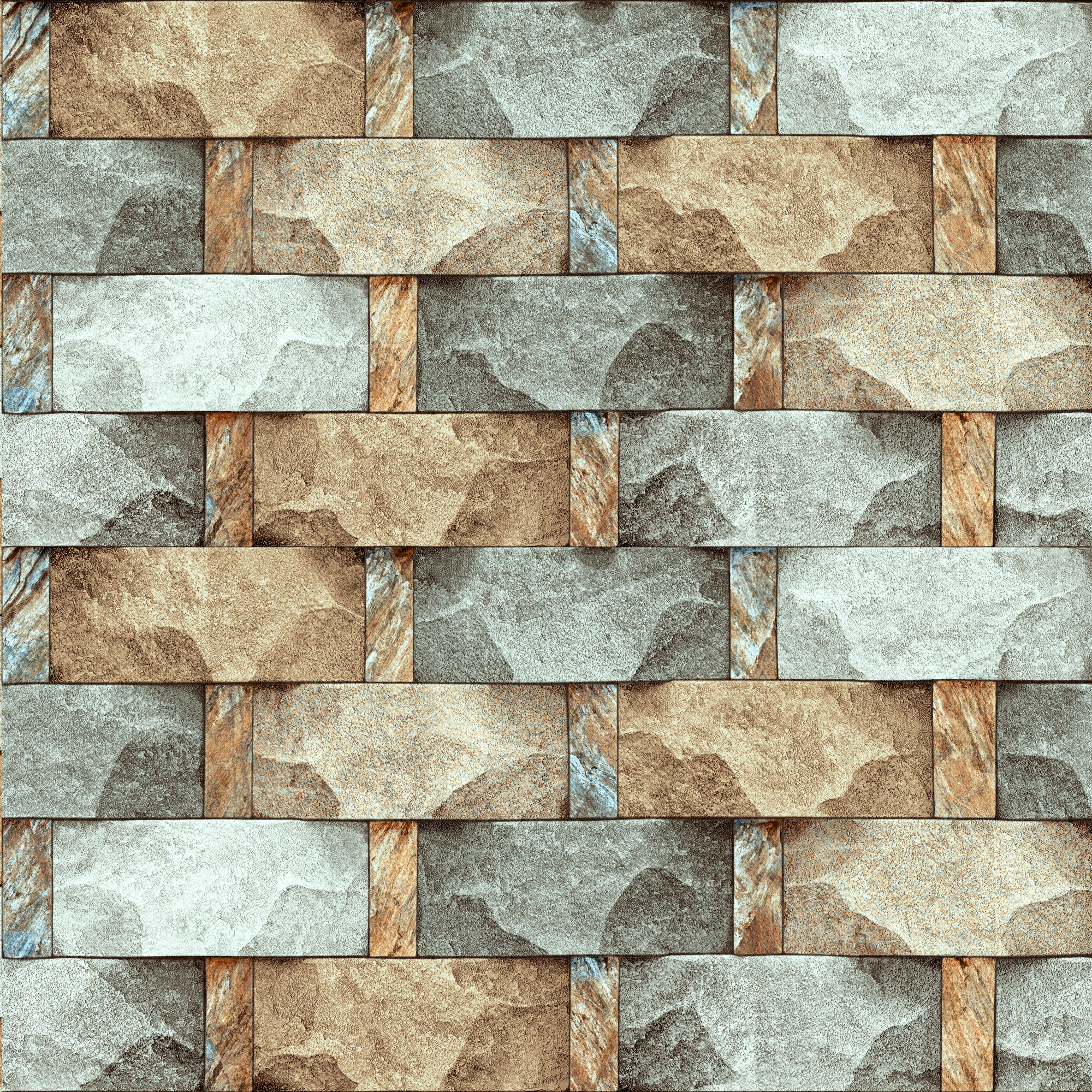 Узор, имитирующий каменную стену, является отличным решением для оформления коридоров, залов, а также декора гостиной, кухни или ванной комнаты. Цвета таких оттенков, как коричневый, бежевый, ржавый, серый, синий, песочный. Светотень, создающая впечатление 3D-эффекта, придаст помещению дополнительную глубину, а правильное расположение каменных блоков внесет гармонию и ритм в интерьер.