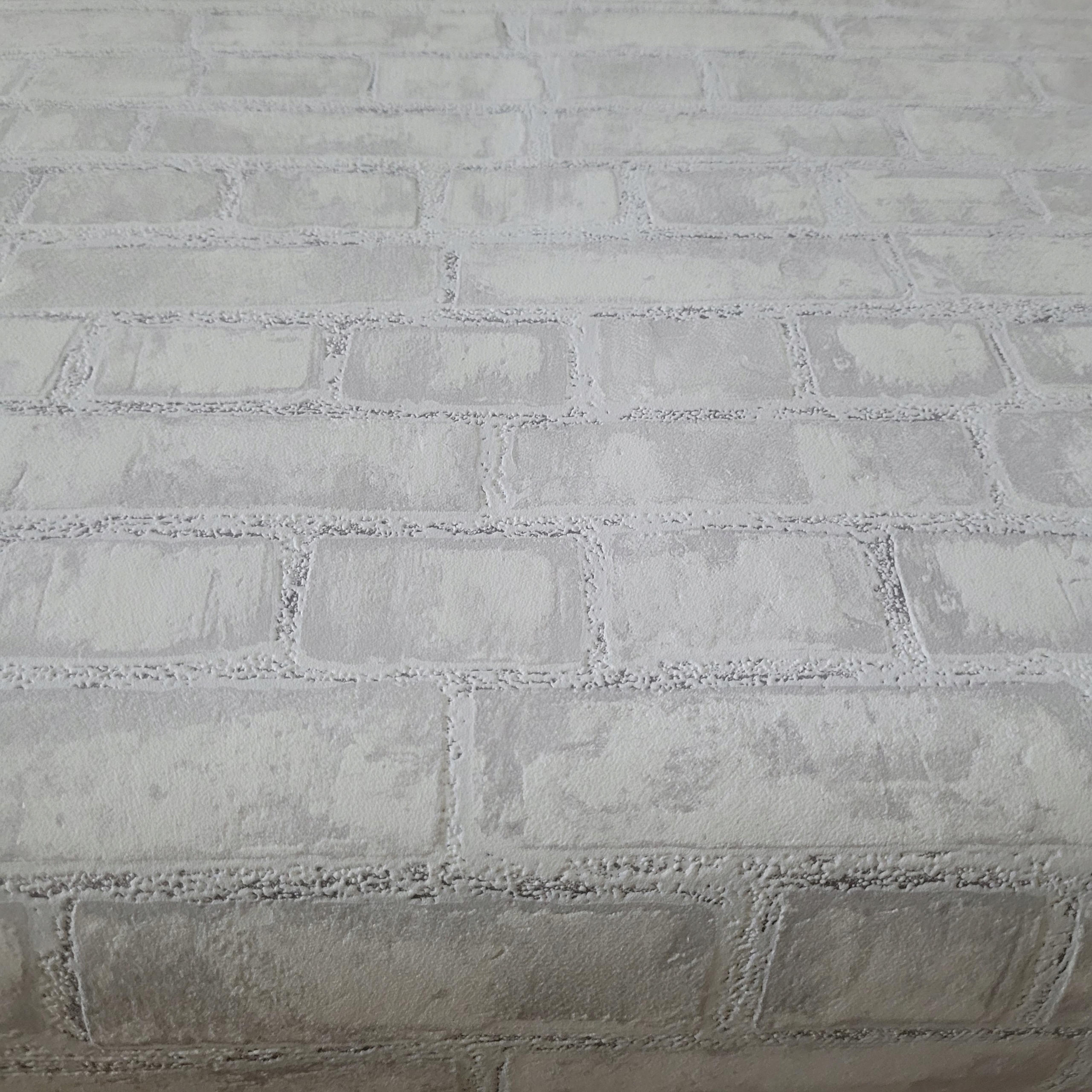 Шпалери настінні, цегла біла, шви сірі, камінь, потертості, 13474-10