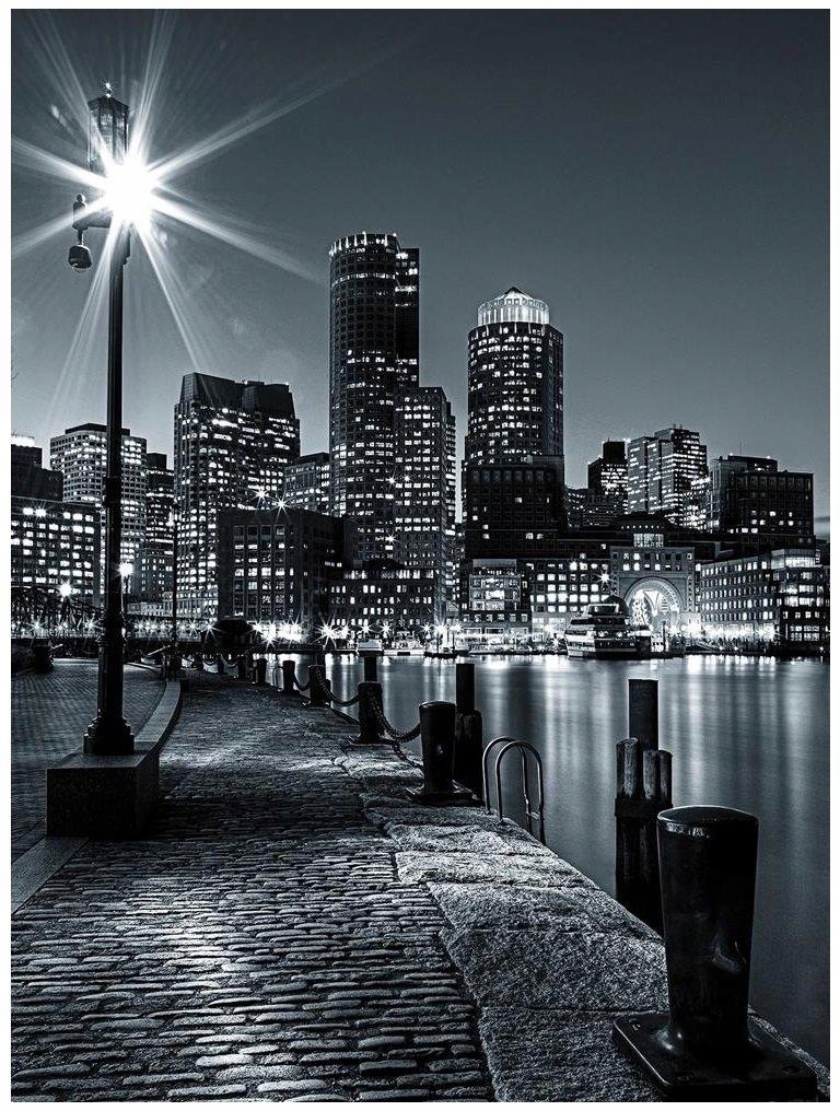 ФОТОобои НОЧНОЙ ГОРОД НЬЮ-ЙОРК ЧЕРНО-БЕЛЫЕ ВЕРТИКАЛЬНЫЕ ОБОИ 184х254