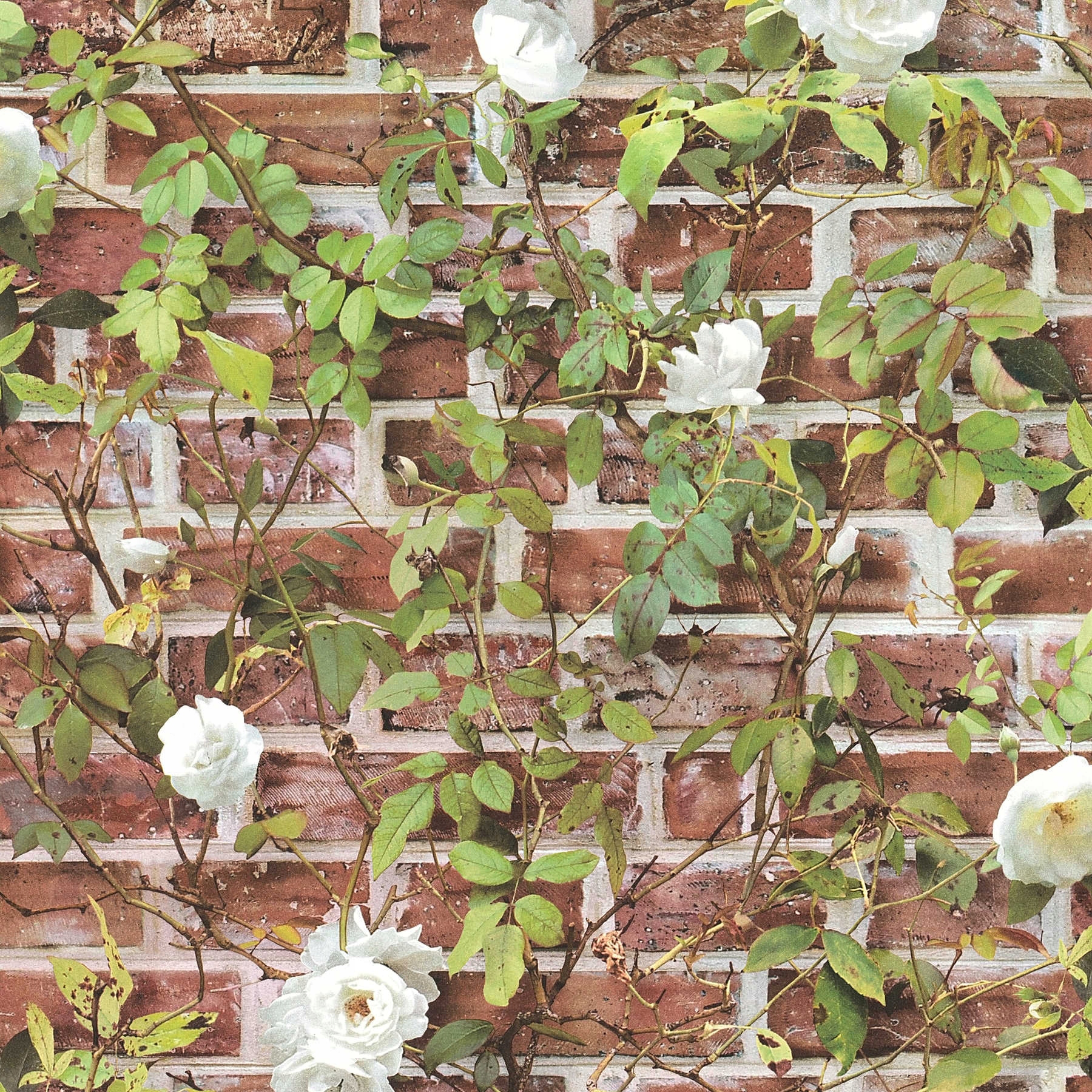 ШПАЛЕРИ ПАДАЮЧІ ТРОЯНДИ НА ЧЕРВОНІЙ ПАПЕРОВІЙ ЦЕГЛІ