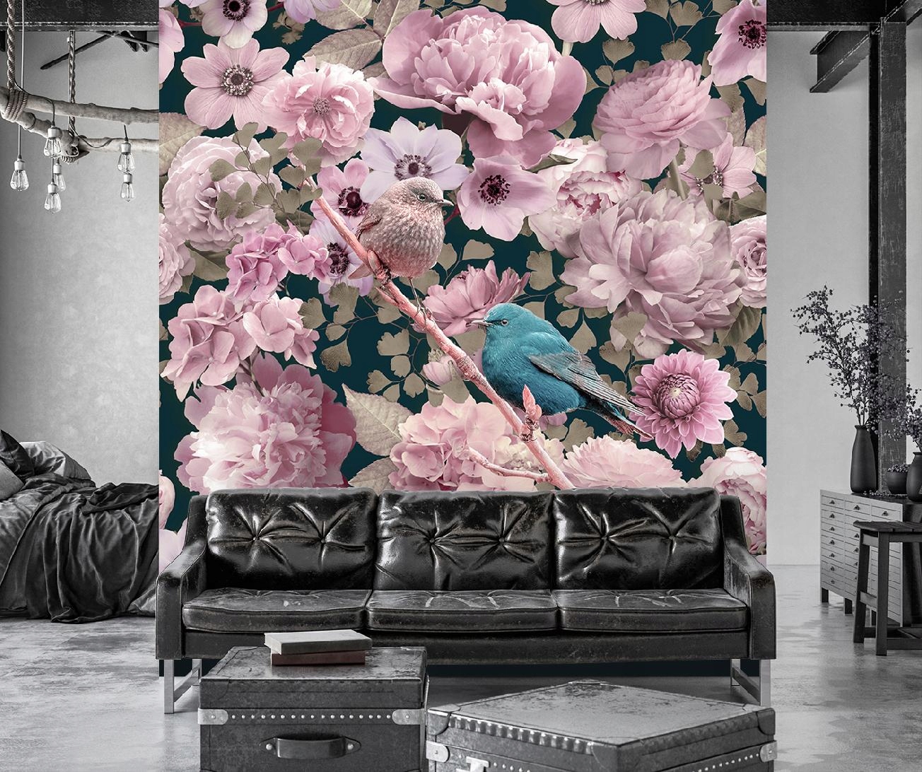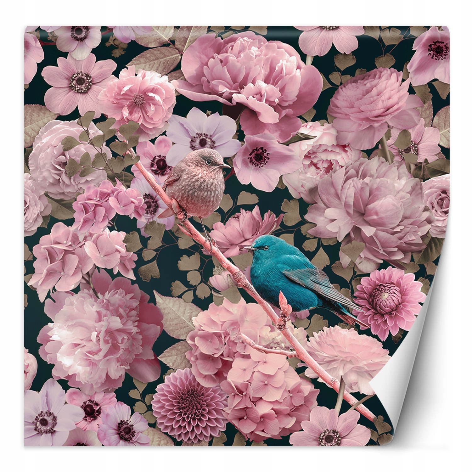 ШПАЛЕРИ Синій птах на фоні рожевих троянд 200х200