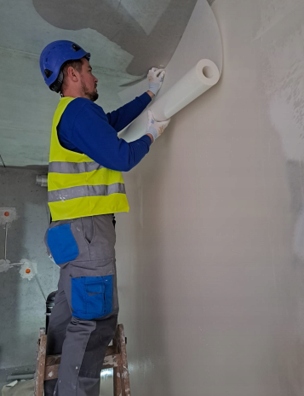 Водонепроницаемый, нетоксичный и огнестойкий стеклонетканый материал, предназначенный для ремонта, укрепления и выравнивания поверхностей бетонных стен и потолков, гипсовых штукатурок, гипсокартонных листов, структурных штукатурок , минеральные штукатурки, кладка стен из гипсовых блоков и пустотелого кирпича.