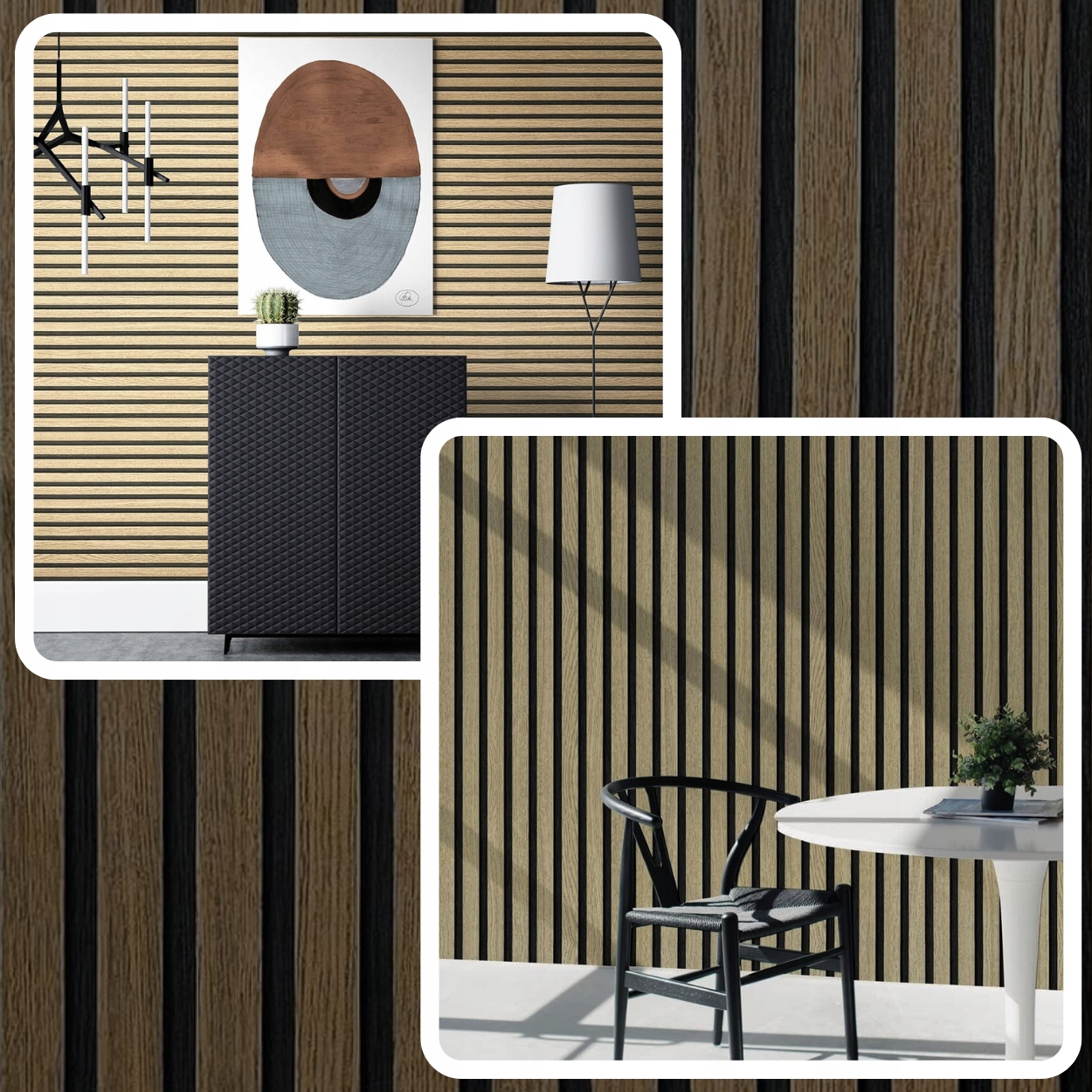 ✅Эффективная имитация ламелей:Обои прекрасно воспроизводят внешний вид деревянных ламелей, придавая интерьеру современный и элегантный характер.