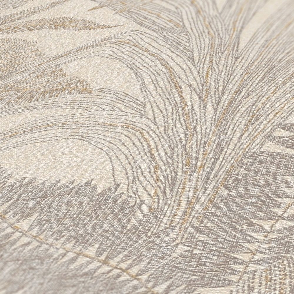 - Обои рисунка в больших листьях в теплых бежевых серого цветов.