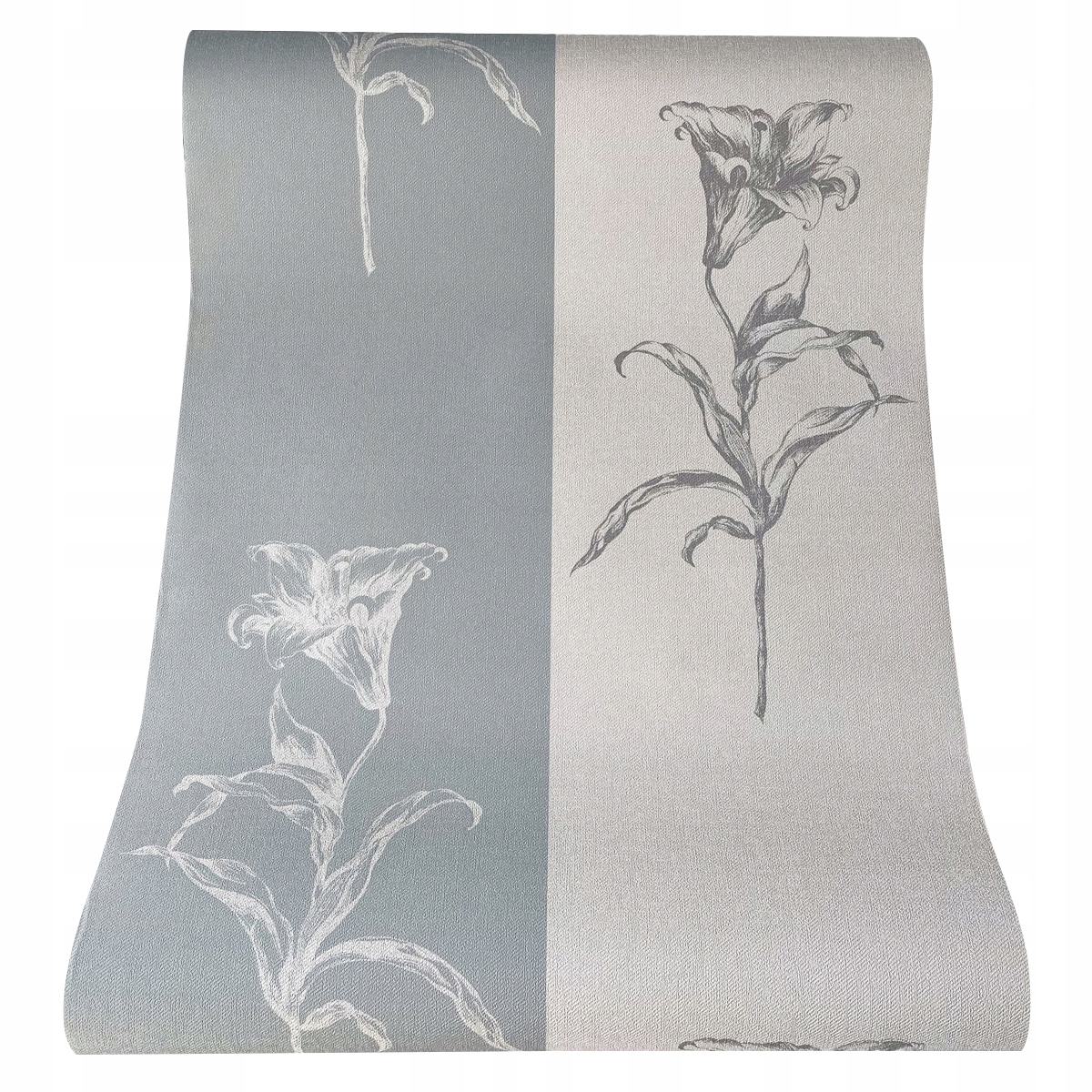 ОБОИ ВИНИЛОВЫЕ ГРАФИЧЕСКИЕ ЦВЕТЫ ШИРОКИЕ ПОЛОСКИ ГОЛУБЫЕ КАНВАС СТРУКТУРА 28106