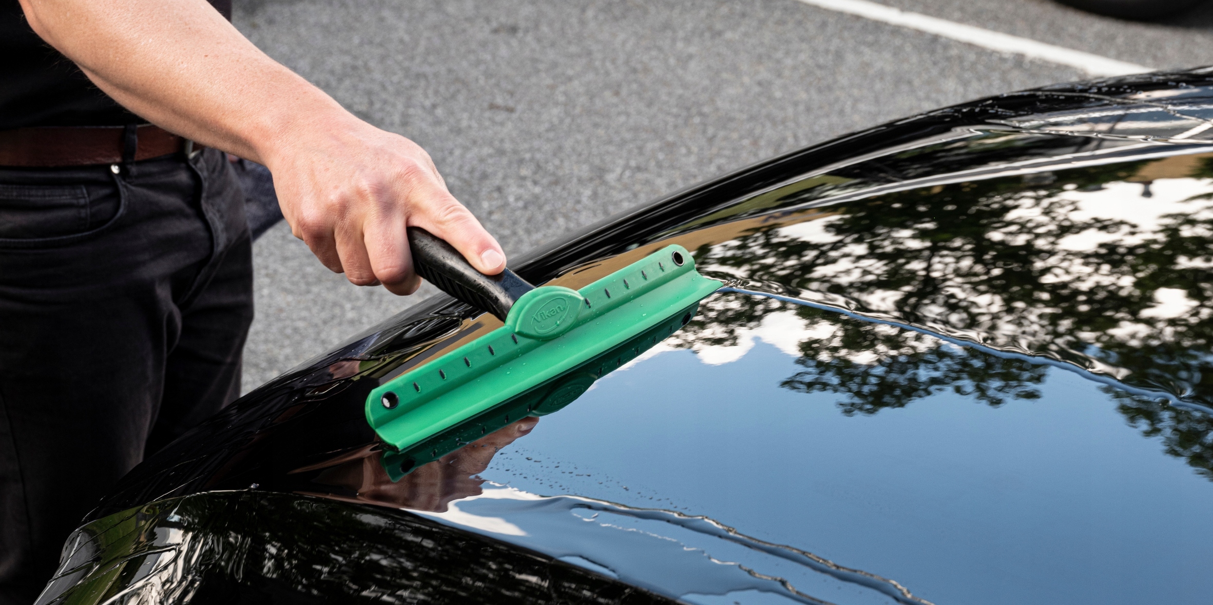 Мягкая резина швабры адаптируется к любой сушиемой поверхности.