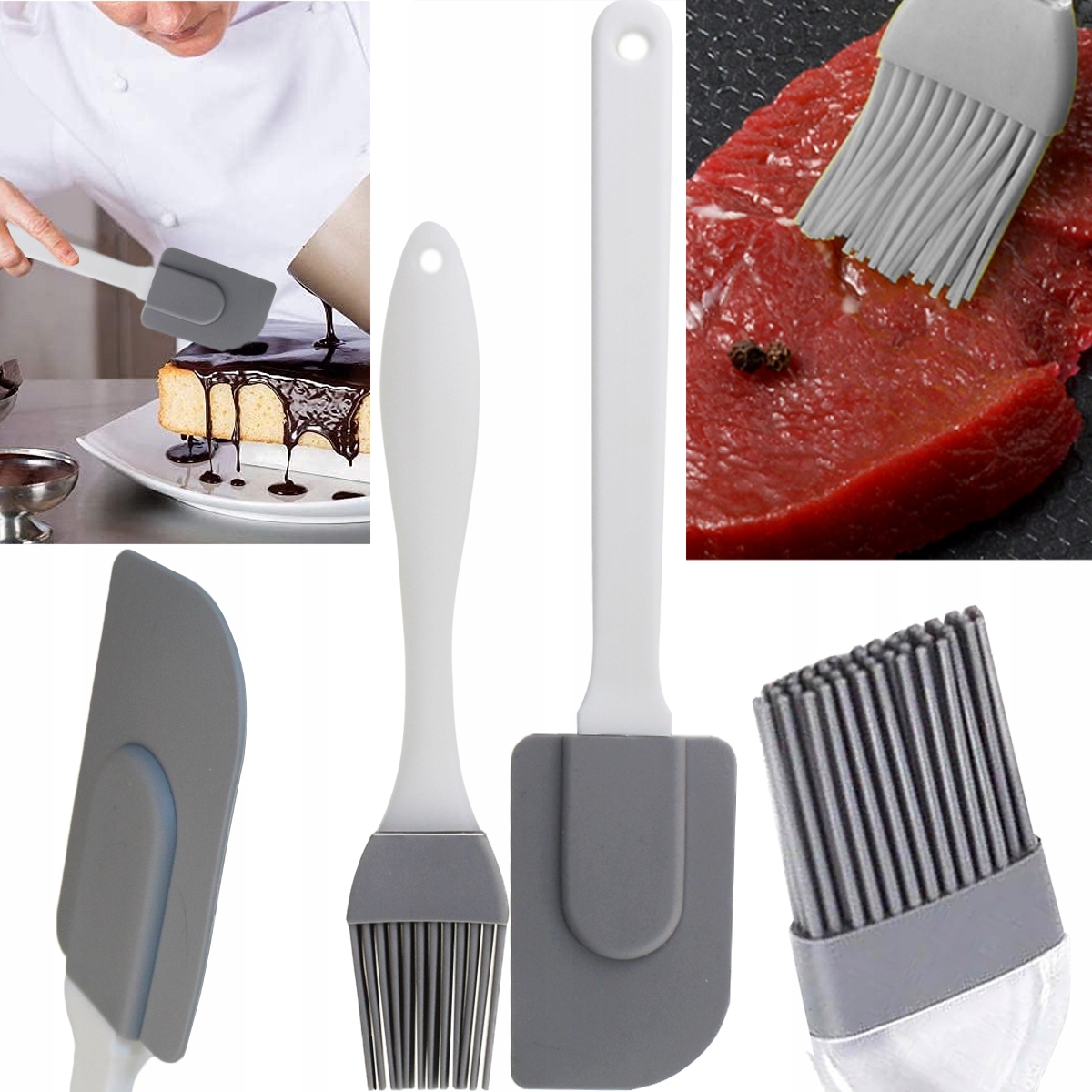 Силиконовая кисточка и лопаточка — незаменимые аксессуары на каждой кухне. С помощью кисточки можно легко размазывать жидкие продукты по блюдам, выпечке и десертам. С ее помощью можно, например, намазать мясо маринадом или смазать форму для запекания. Лопатка идеальна для смешивания ингредиентов и выравнивания смеси по тесту или противню.