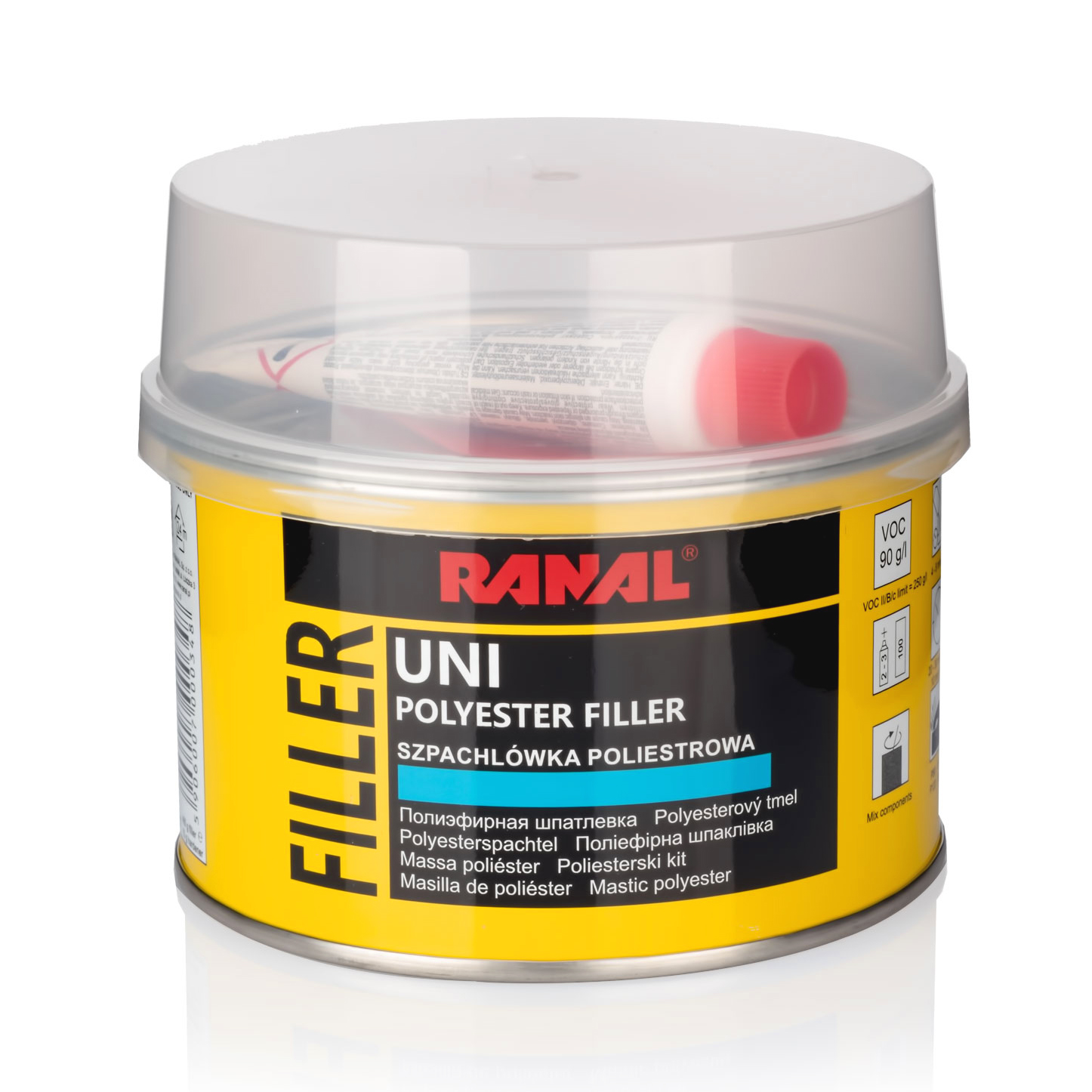 Шпатлевка UNI предназначена для заполнения неровностей и впадин на поверхности перед нанесением лакового покрытия. Производится на основе высококачественных полиэфирных смол и нефтеперерабатывающих компонентов. Характеризуется мелкозернистой консистенцией. Относительно твердый, он создает покрытия с хорошей адгезией к загрунтованным и негрунтованным поверхностям. Он легко наносится и шлифуется, имеет повышенную термостойкость (в диапазоне от -30 до 80°С). Не используйте непосредственно на оцинкованной стали.