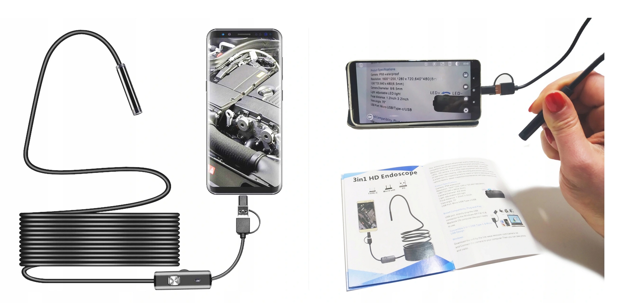 Инспекционная камера с тремя портами USB: стандартный USB, микро USB, USB-C!