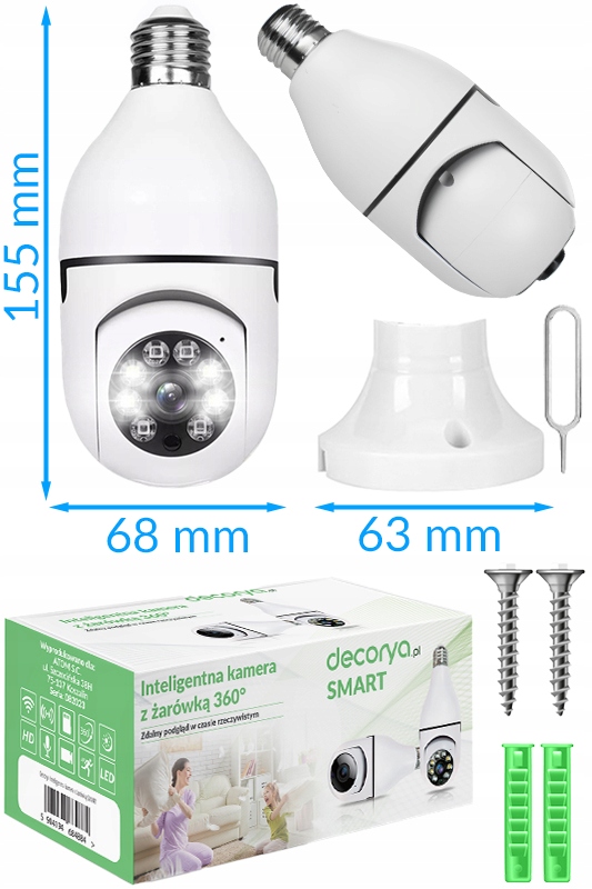 Камера SMART Decorya в лампочке даст вам полный контроль над вашей квартирой, офисом, двором или гаражом. Даже находясь далеко от дома, вы в любой момент можете убедиться, что вашим близким ничего не угрожает, а ваш дом в безопасности. Интеллектуальное управление через приложение на телефоне чрезвычайно удобно и просто. Из любой точки мира вы можете просматривать изображение в реальном времени, контролировать и управлять всеми функциями камеры.