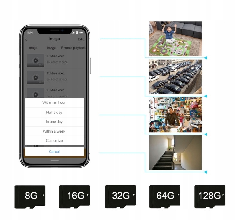 Обнаружение движения — камера начинает запись на карту после обнаружения движения человека и автоматически останавливается, когда ее покидают.