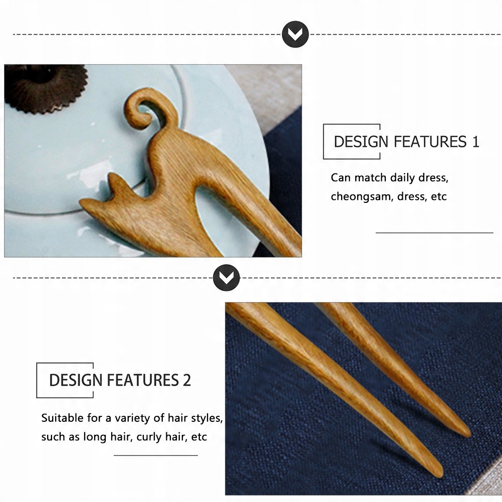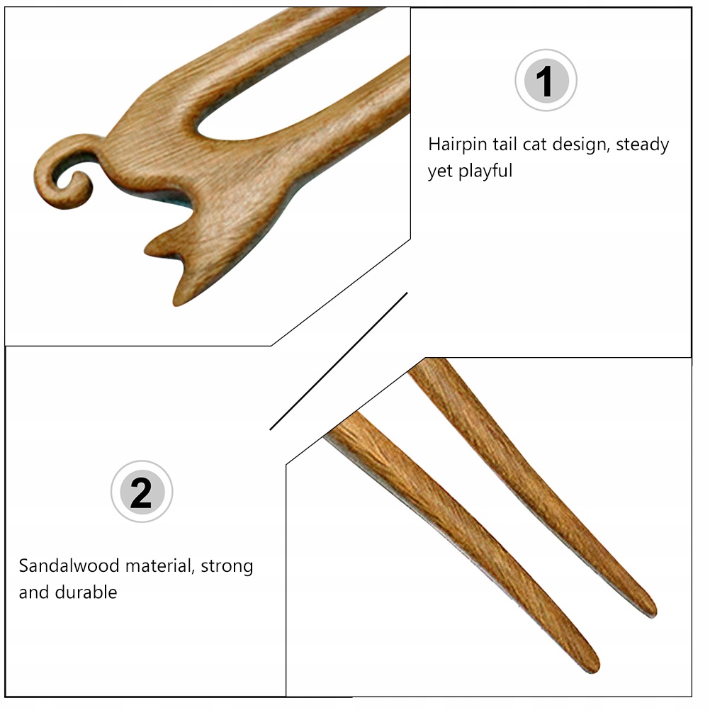 Хорошо изготовлен из дерева, безопасен и долговечен, гладок для защиты ваших волос, прост и элегантен. Размер идеально подходит для женщин и подростков, легко закалывает даже густые волосы, надежно удерживает и хорошо украшает пучок. Резной рисунок кота красив и элегантен.