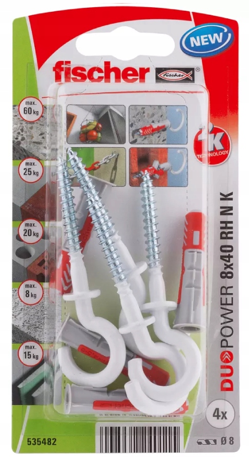 Универсальный дюбель Fischer Duopower с круглым крючком 8X40 RH N K NV FISCHER