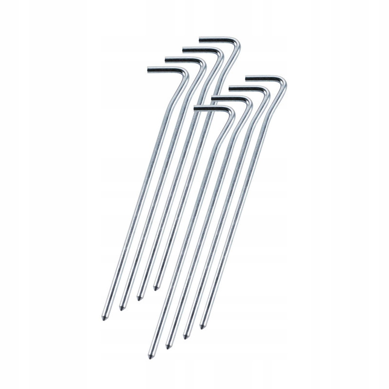 Набор из 10 колышков для палатки длиной 19 сантиметров подойдет для любого похода на природу. Традиционная, проверенная форма позволяет легко вбивать штифты даже в самую твердую поверхность, а стальная конструкция исключительно устойчива к неблагоприятным погодным условиям и повреждениям.