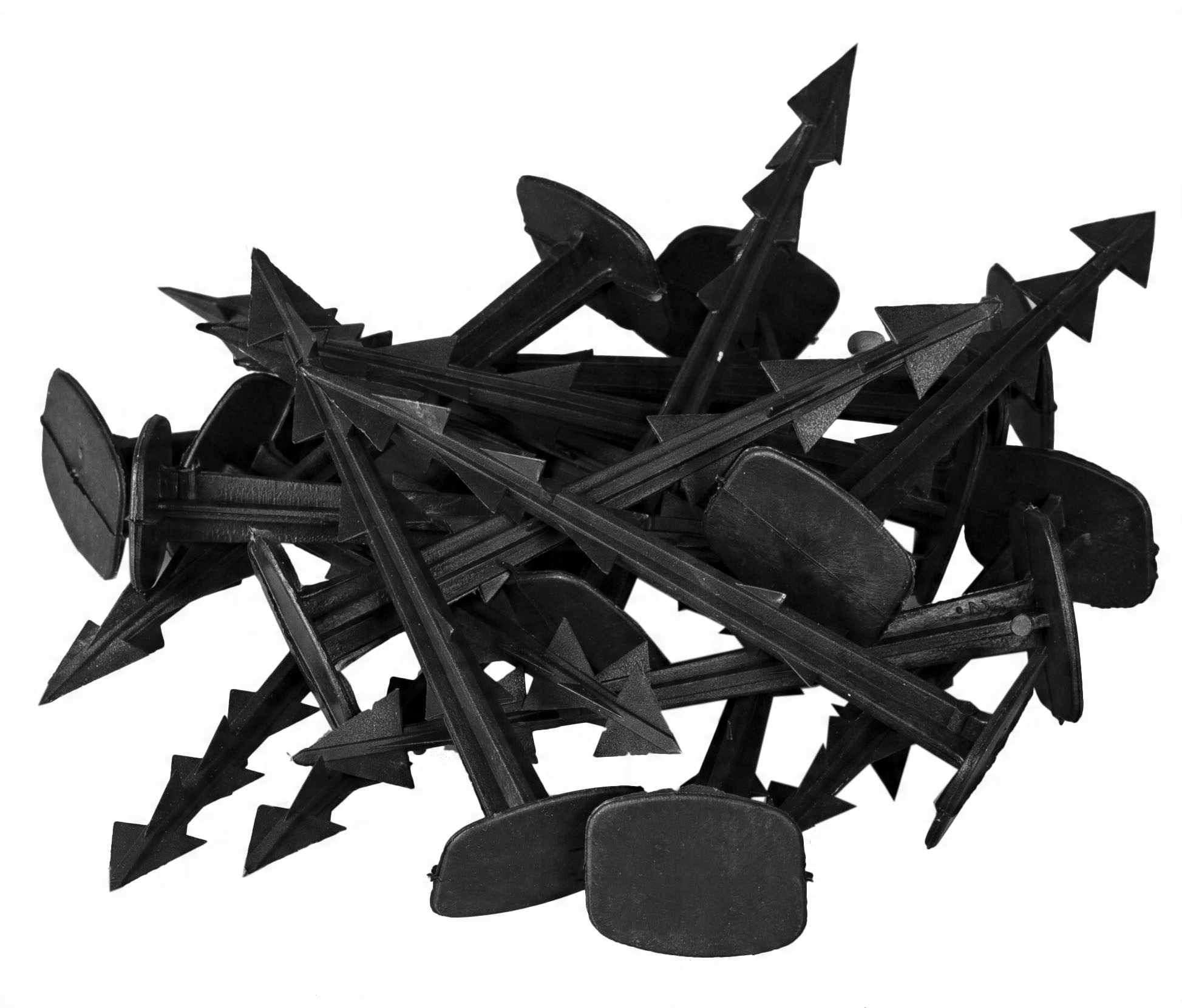 Каждый штырь имеет специальный профиль — зубцы вдоль элемента облегчают его вбивание в землю. Благодаря этому их можно быстро прикрепить даже к твердой земле. Зубцы также служат для стабилизации элемента, защищающего садовую ткань.