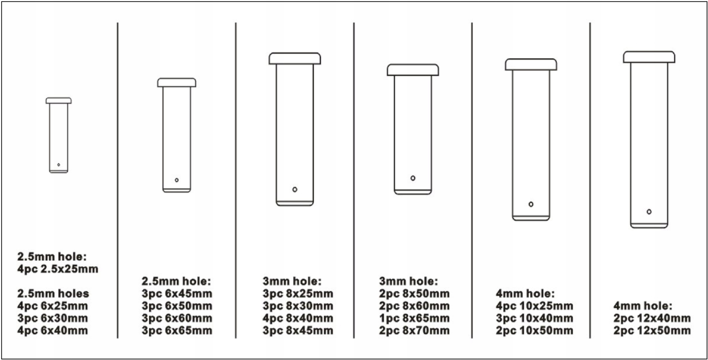 ШТИФТЫ С ГОЛОВКОЙ ЦИЛИНДРА И ОТВЕРСТИЕМ, РАЗМЕРЫ РАЗМЕРОВ НАБОР ШТИФТОВ 60 ШТ.