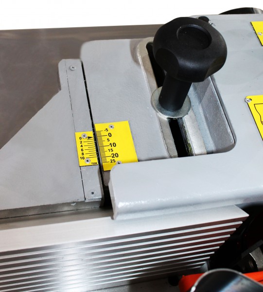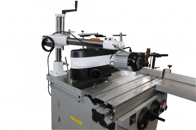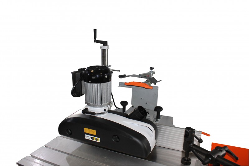 Алюминиевый подвижный стол с точными направляющими из закаленной стали. Большой, массивный чугунный рабочий стол. Диаметр отверстия в столе 190мм, с подсосом под стол. Электронное считывание скорости.Защита шпинделя для диаметра 180 мм. Установлен фиксатор шпинделя, 4 скорости вращения. Наклоните шпиндель назад.