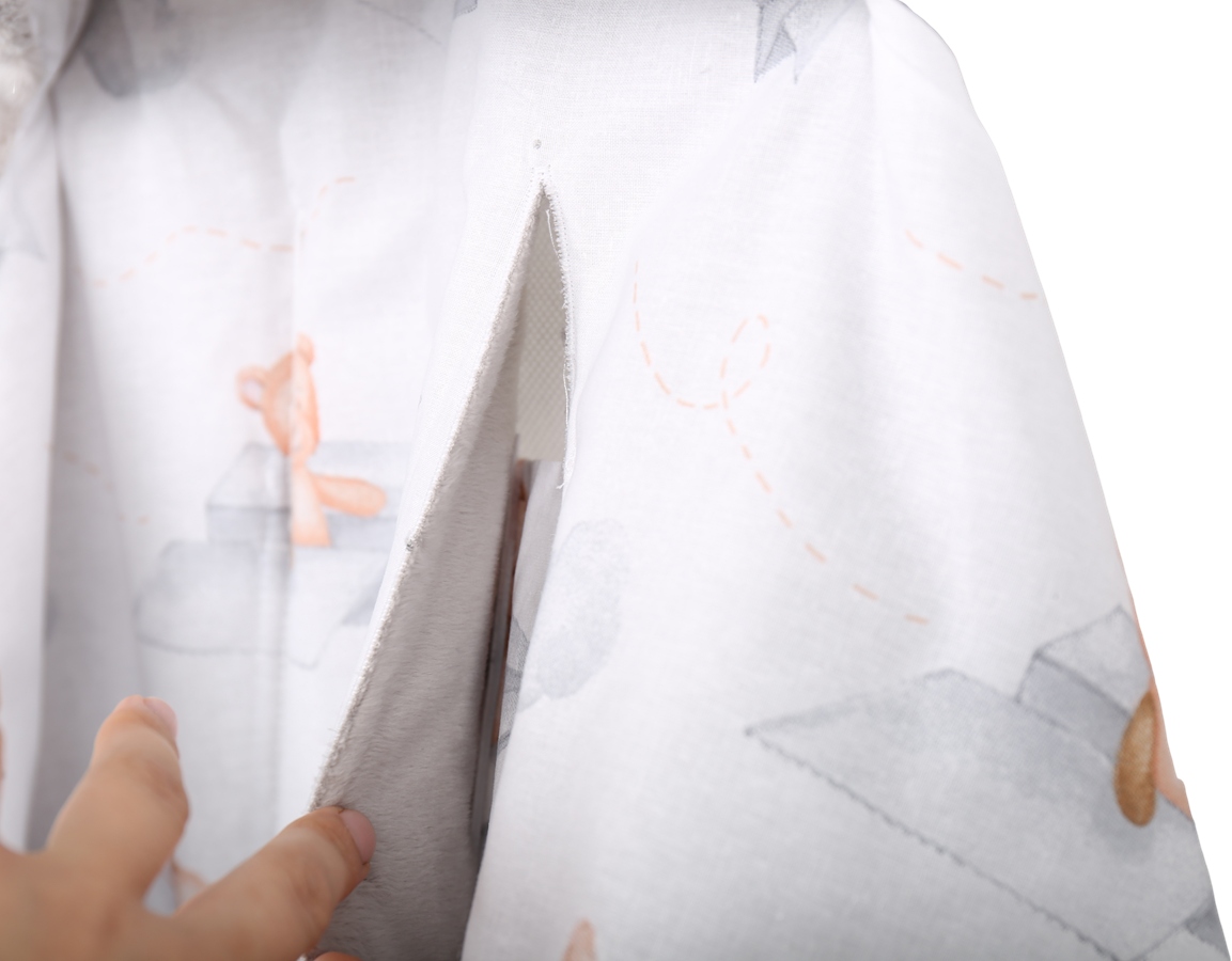 ● Широкая спальная часть в форме u - свобода для ног, отсутствие возможности копать и не нужно покрывать дополнительным одеялом. wrapping the "arms" - you will adapt the degree of wrap to the age and needs of the child (from "wrapping tightly" at the newborn, to full freedom of movement when the toddler is already adapted to external conditions)