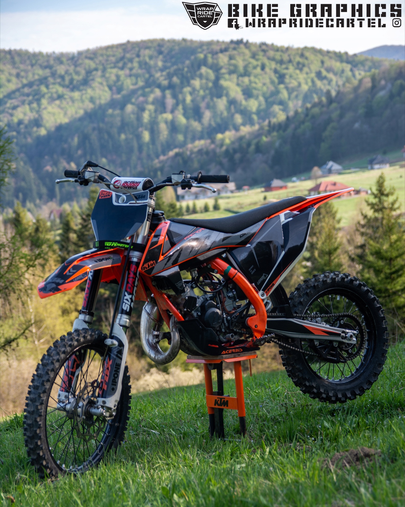 Профессиональный Veener Mx Rip Ride Cartel - Model KTM SX 85 2018-2023. Визуализация на SX85 2018. Графика может быть адаптирована к любой модели/год. выхлоп