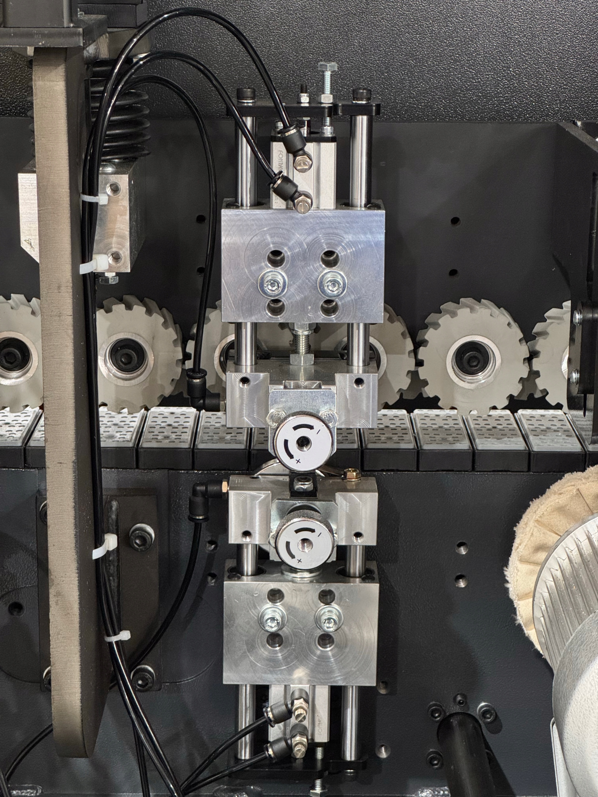 rema Expert Автоматическая вининая машина с предварительным фрезерованием, нагревом пластин, 2 скребками (плоская, сияющая), заработка углов, полировки и мебельные заводы. Устройство сочетает в себе высокую точность с производительностью, обеспечивая идеальную отделку края даже в самых требовательных проектах.