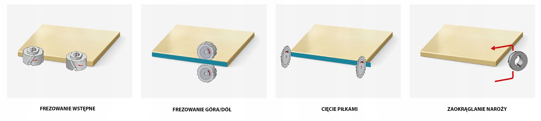 - Агрегат оснащен фрезерной головкой со сменными пластинами из высокопрочной стали для фрезерования кромки.