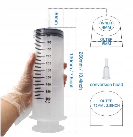 ✔️【Набор больших шприцев】 1 шт. Шприцы по 500 мл 1 шт. 100 см стерильный катетер для клизмы 1 шт. Конвертер калибра размера. Каждый большой шприц индивидуально запечатан, чист, безопасен и стерилен. Шприц изготовлен из высококачественного материала, прочный, долговечный и многоразовый.